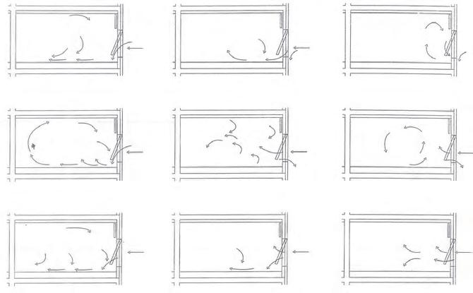 Relevant observations made on the sample building are delivering important statements about the performance of the envelope. On the one hand, the light projected over the surface of the envelope is manipulated in order to control its trespass trough the shell generating a particular light pattern at floor level and a specific climatic ambient in the internal volume. On the other hand the ventilation settings have been tuned in accordance to specific meteorological conditions at the site, furthermore they change together with the seasons of the year in accordance to the wind directionality and the oscillation of temperatures.