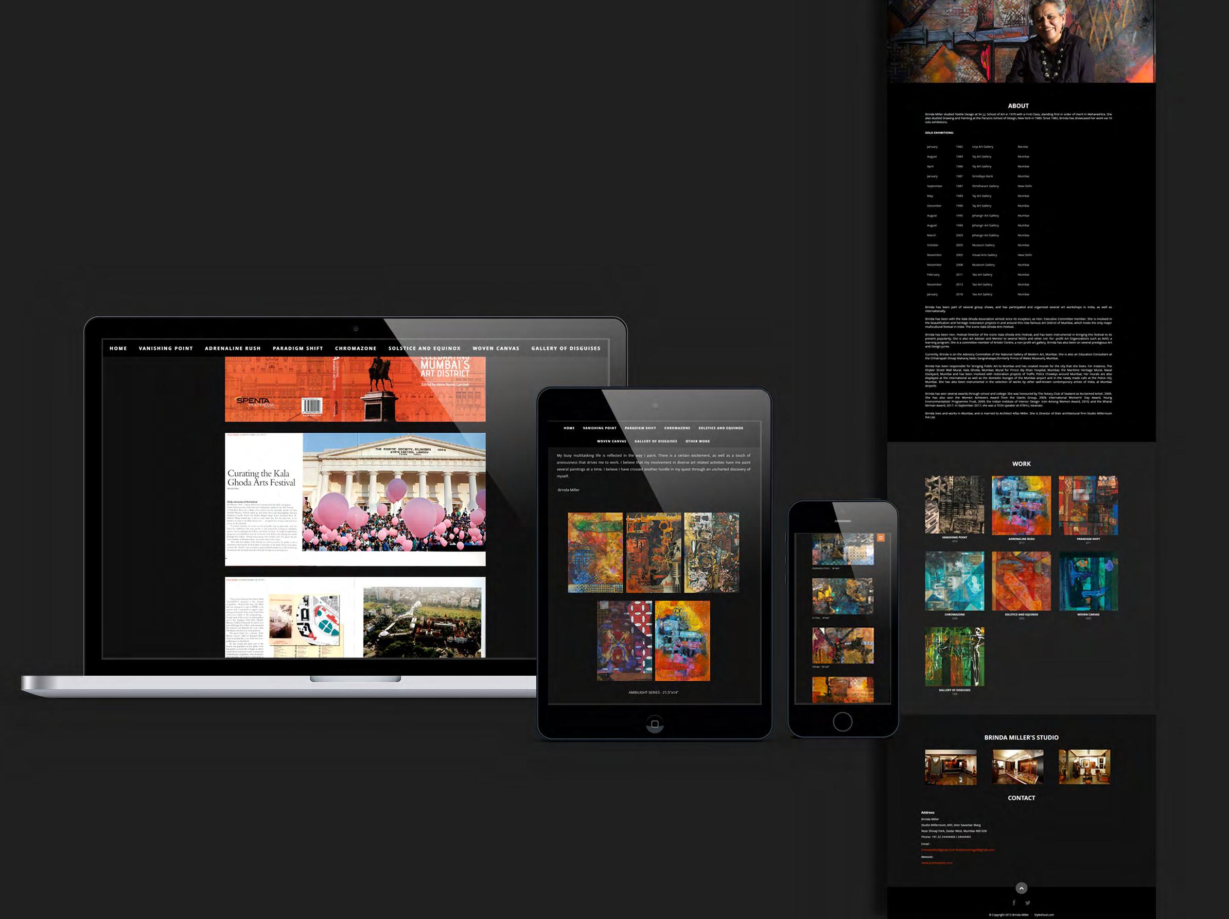 Website design for Brinda Miller to showcase her artwork. The background is black so that the artwork stands out.