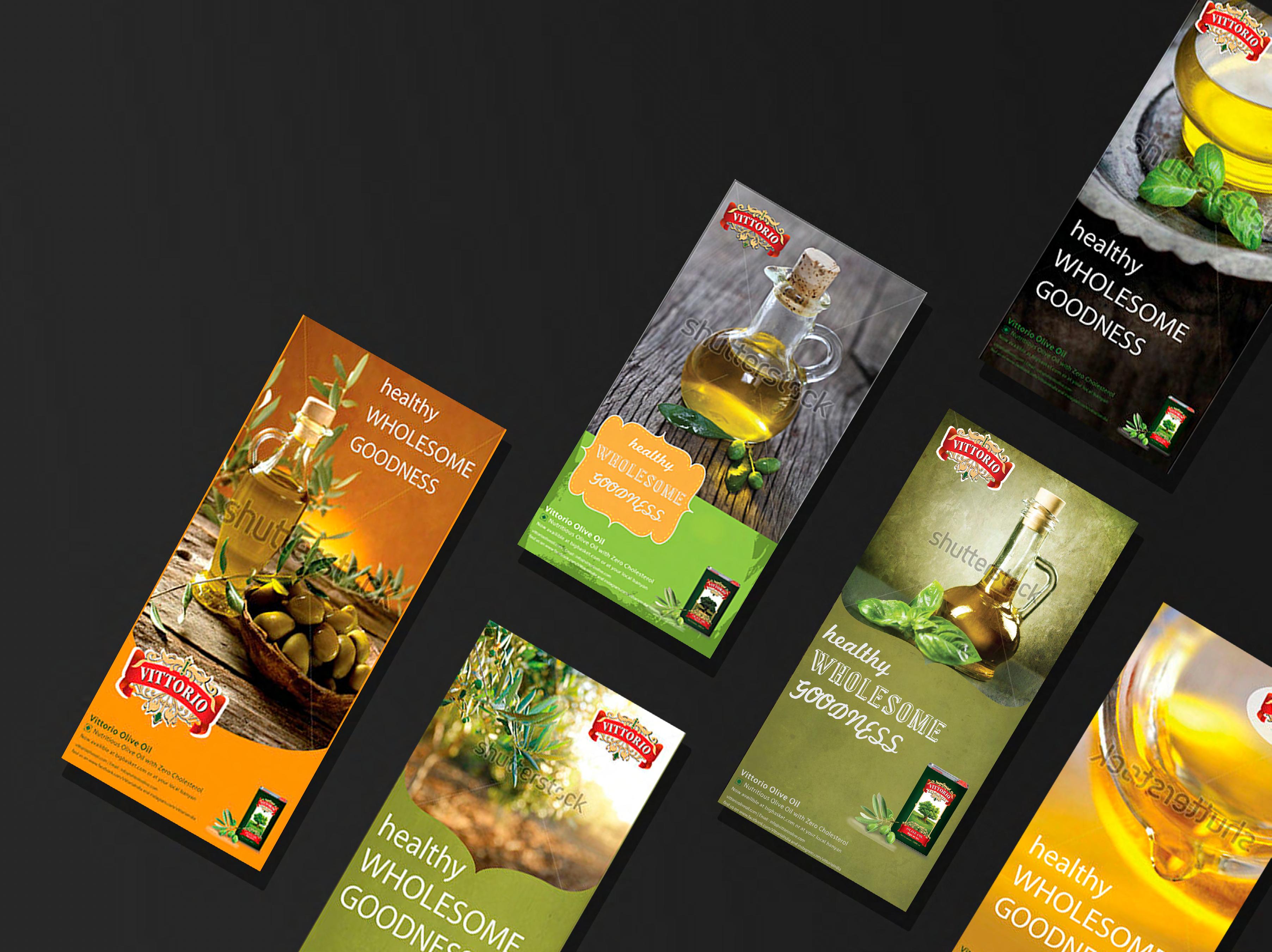 Banner options designed for Vittorio Olive Oil, keeping the color palette olive greens paired with oranges and yellows.
