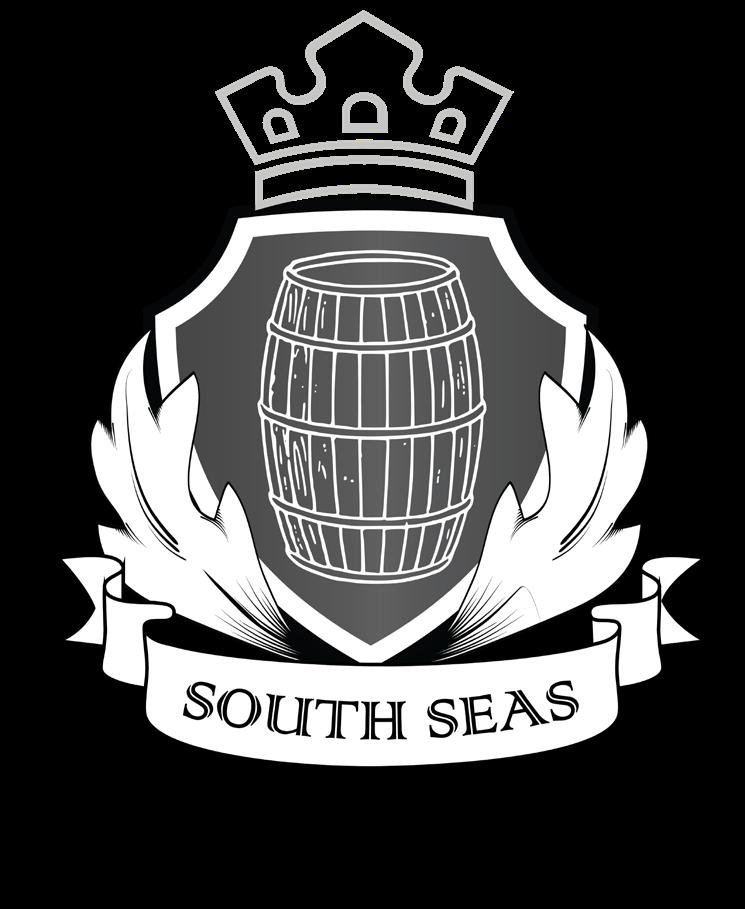 Design for a logo for South Seas Distillery. The client wanted the logo to look like a crest. The logo options play with elements found in a distillery like a pot still or a barrel paired with crest-like elements like a crown, shield and wings.