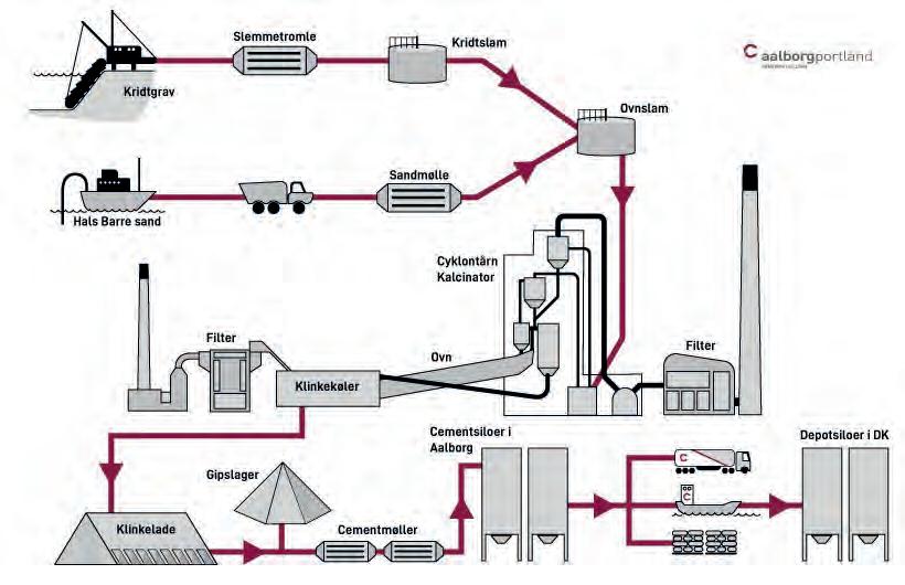 Aalborg Portlands semi-tør anlæg (én cementovn) har en kapacitet, så det alene kan dække hele det danske forbrug af de almindelige grå cementer.
