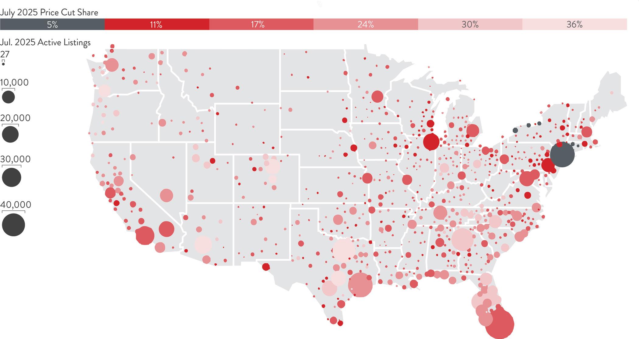 FIGURE 6. JULY 2025 RETAIL LISTING PRICE CUTS BY METRO
