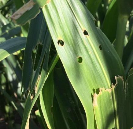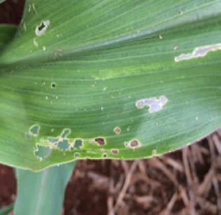 7. Daños causados por larvas de Spodoptera frugiperda en hojas. Fuente: Corteva Agriscience Argentina.