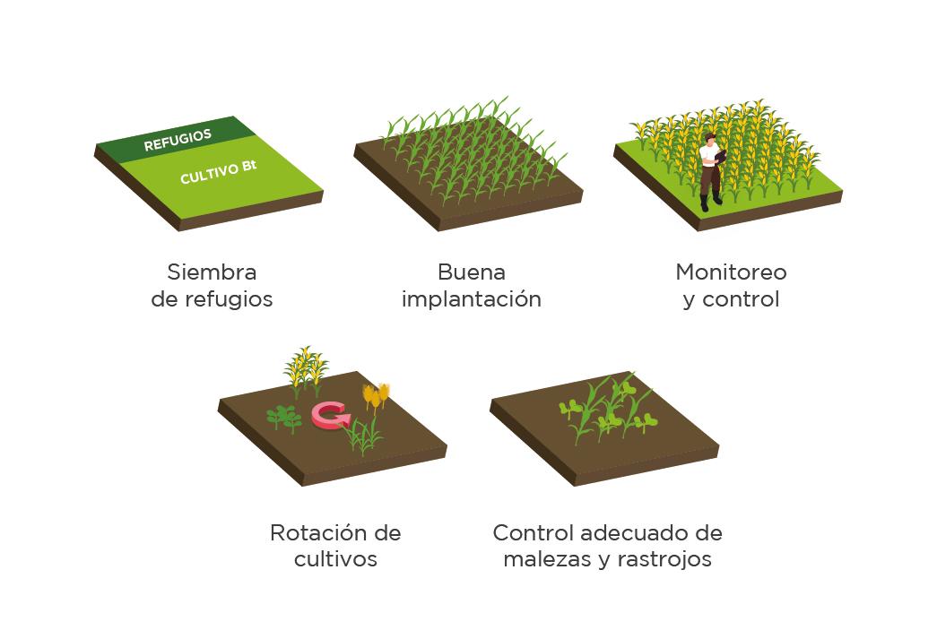de resistencia es manejar los factores que contribuyen a su selección de modo de mantener muy baja la frecuencia de individuos resistentes en la población. Los programas de manejo de resistencia de insectos (MRI) se enmarcan en el manejo integrado de plagas (MIP) y consisten en un conjunto de buenas prácticas agrícolas (BPA). La adopción sostenida de estas prácticas permite prolongar la vida útil de las tecnologías de control disponibles y preservar sus beneficios para el sistema productivo.