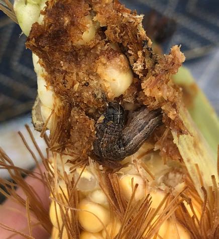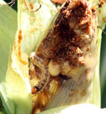 Los daños en las espigas de maíz pueden ser causados por S. frugiperda y/o Helicoverpa zea (Figura 11). S. frugiperda puede dañar toda la longitud de la espiga, mientras que H. zea afecta principalmente los granos ubicados en la punta. Además,