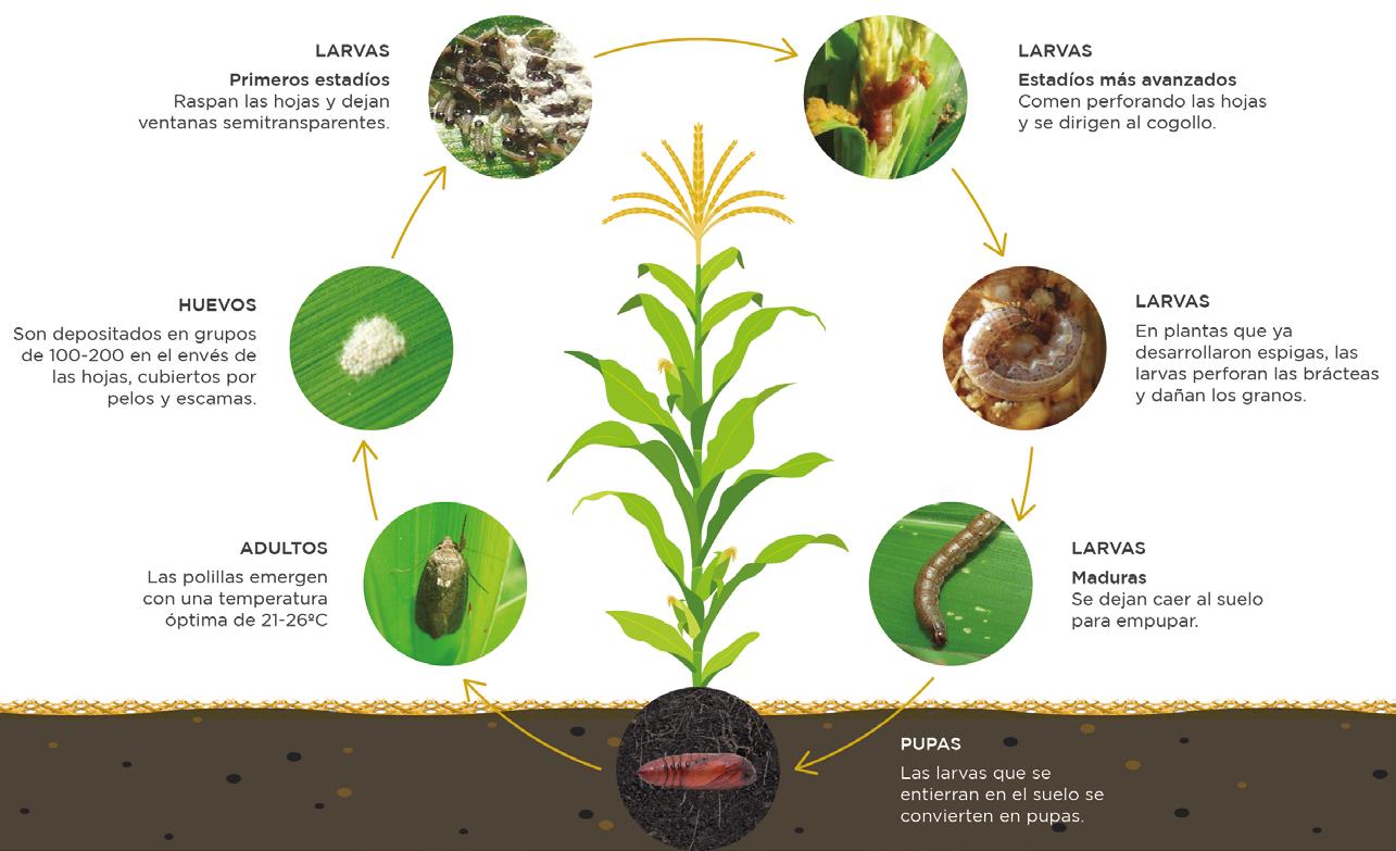 Spodoptera frugiperda es una especie nativa de regiones tropicales del hemisferio occidental. La duración de su ciclo de vida y, por lo tanto, del número de generaciones por campaña, está relacionado directamente con la temperatura ambiente. Es así como su ciclo puede completarse en 20-30
