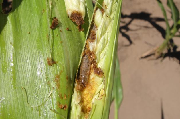 Figura 12. Daños causados por larvas de Spodoptera frugiperda en panoja. Fuente: Roberto Peralta.