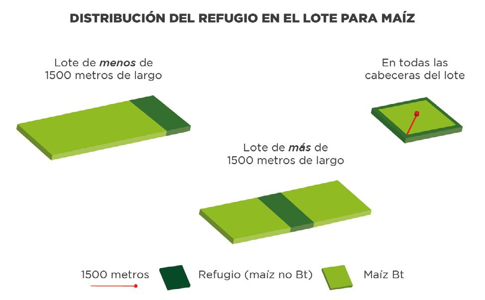 sembrar refugio para asegurar la sincronización de adultos susceptibles del refugio con los posibles resistentes de la porción Bt del lote. Adicionalmente, una adopción generalizada de refugio contribuiría a retrasar la selección de resistencia a nivel regional.