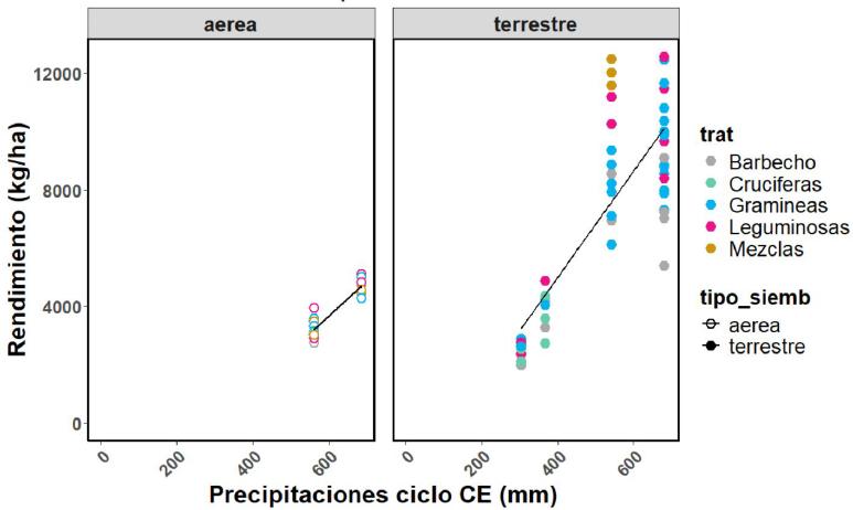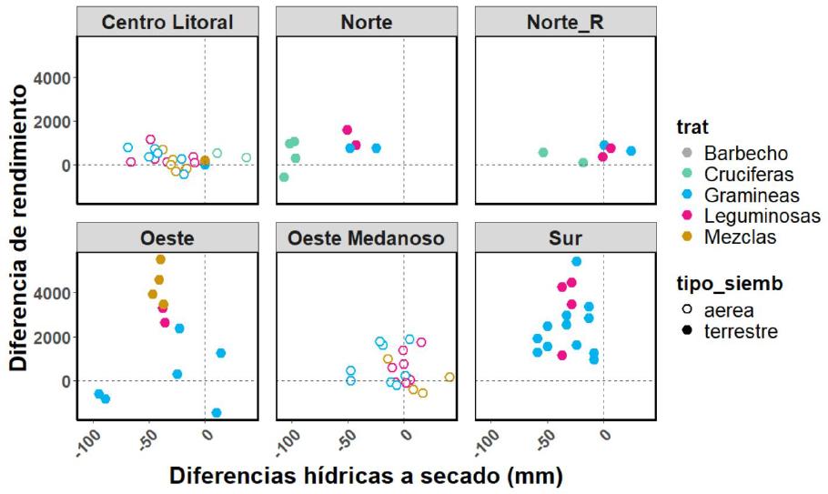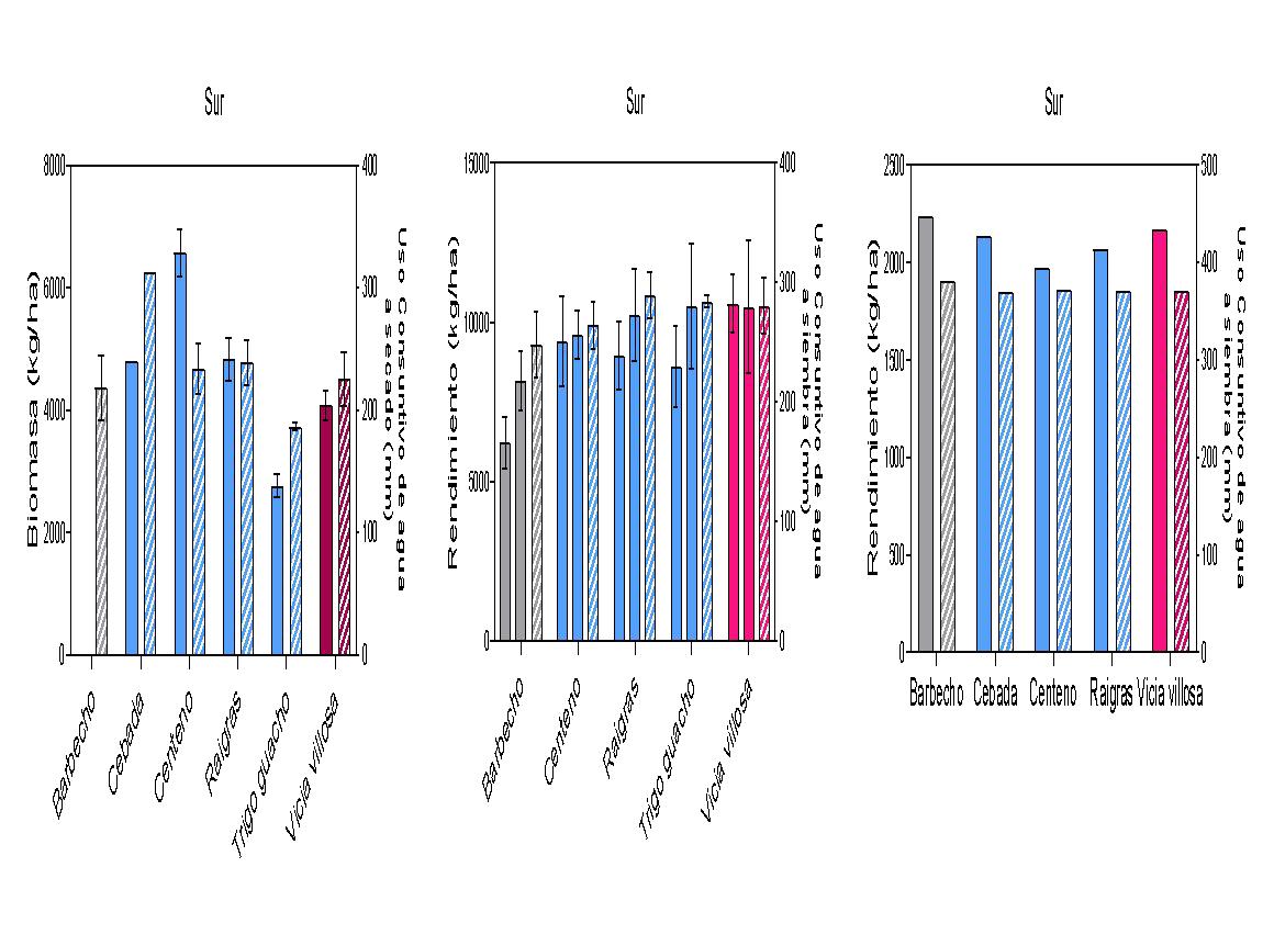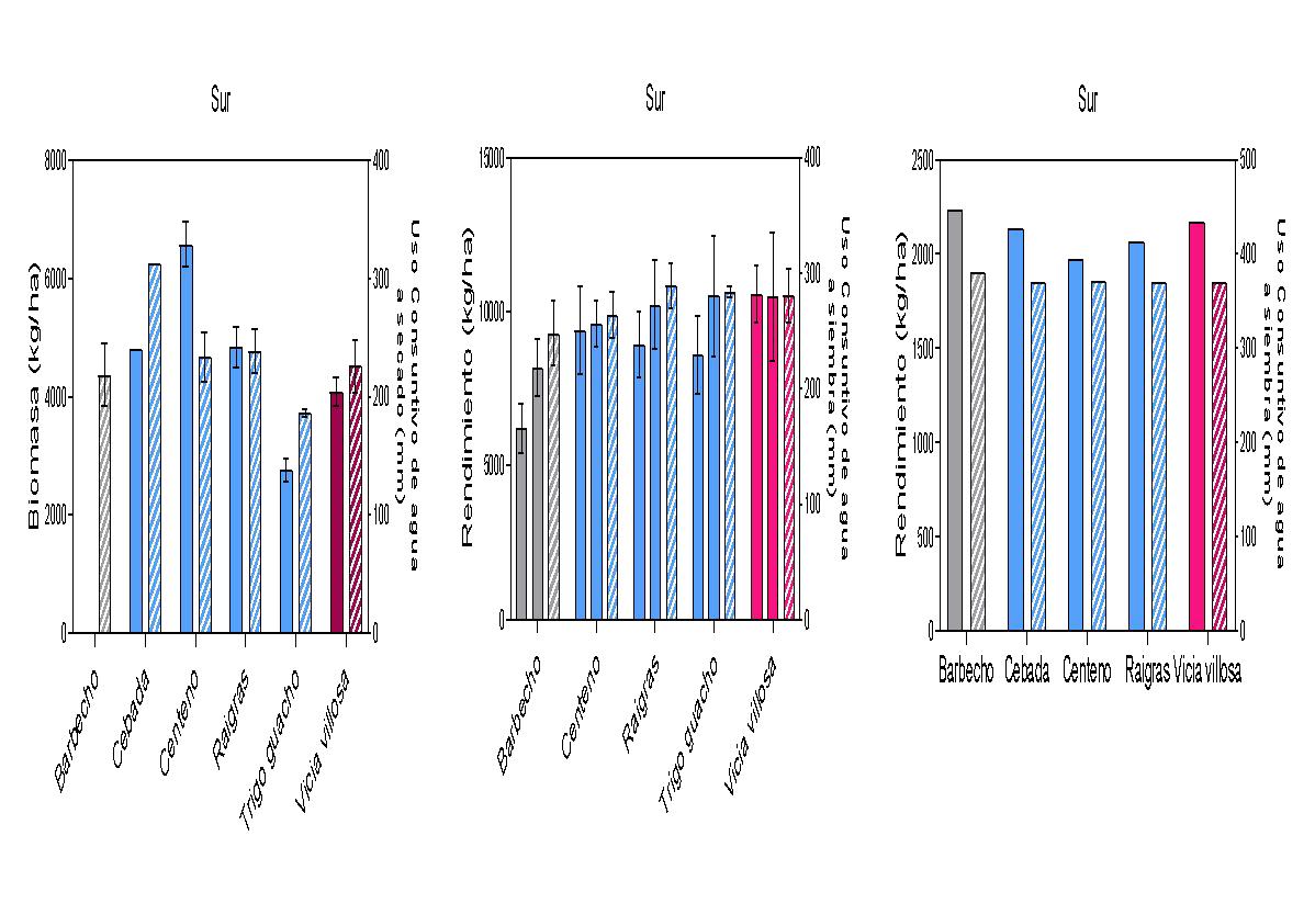 lidad entre sitios es muy marcada, con ambientes tales como Tandil y Marcos Juárez que se ubican en las mayores cantidades de agua útil disponible, Zavalla 1 y Godoy con los valores más reducidos, y otros sitios en situaciones intermedias. En conjunto, estos resultados indican que la disponibilidad hídrica al inicio del cultivo sucesor depende mucho más de las condiciones climáticas y edáficas locales que del uso previo del lote con CS o barbecho, lo que respalda la compatibilidad del uso de CS —incluso con pastoreo— con una adecuada oferta de agua para el cultivo siguiente.