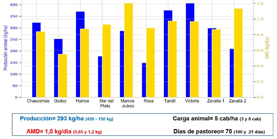 Aun con períodos de ocupación breves, los CS permitieron producir en promedio 250–300 kg de carne/ha, alcanzando valores superiores a 400 kg/ha en ambientes favorables, y manteniendo ganancias individuales elevadas, cercanas a 0,9–1,1 kg/animal/día. La variabilidad que se observó entre sitios y campañas refleja la influencia de factores como el clima, la especie y estado fenológico de los CS, la carga animal y la duración del pastoreo, que son las variables de