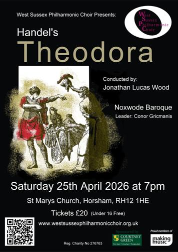 West Sussex Philharmonic Choir perform a spring concert at St Mary’s Church, Causeway, Horsham on Saturday 25 April, 7pm. They perform Handel’s oratorio Theodora, featuring some of his most poignant arias. The choir will be accompanied by Noxwode Baroque Orchestra and five soloists. Tickets £20. westsussexphilharmonicchoir.org.uk