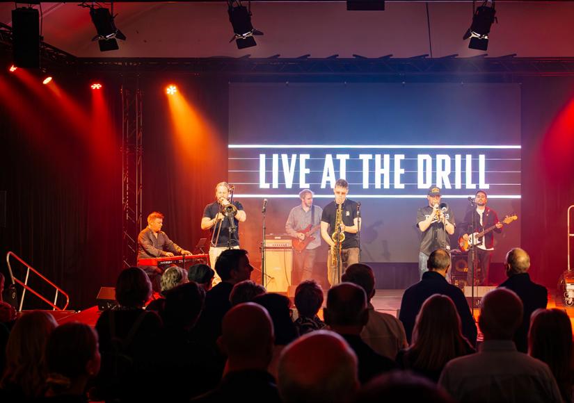 The inaugural Live at the Drill event was held on the night of 26 March, with our print deadline being midday on 27 March. Rather than waiting until May to include the article, we turned it around quickly and you’ll find it on pages 40 – 41. W3 completed their soundcheck at 6.45pm, just 15 minutes before the Drill Hall opened its doors. Photographer Alan had to work fast to set up the shot. He opted to move the band, featuring saxophonist Ed Mitchell and Horsham’s Chris Wintermeyer on trumpet, towards the centre of the hall as a smoke machine had clouded the stage. The organisers also removed a ‘Live at the Drill’ visual displayed on a screen behind the stage, as it would have compromised the placement of the AAH logo.