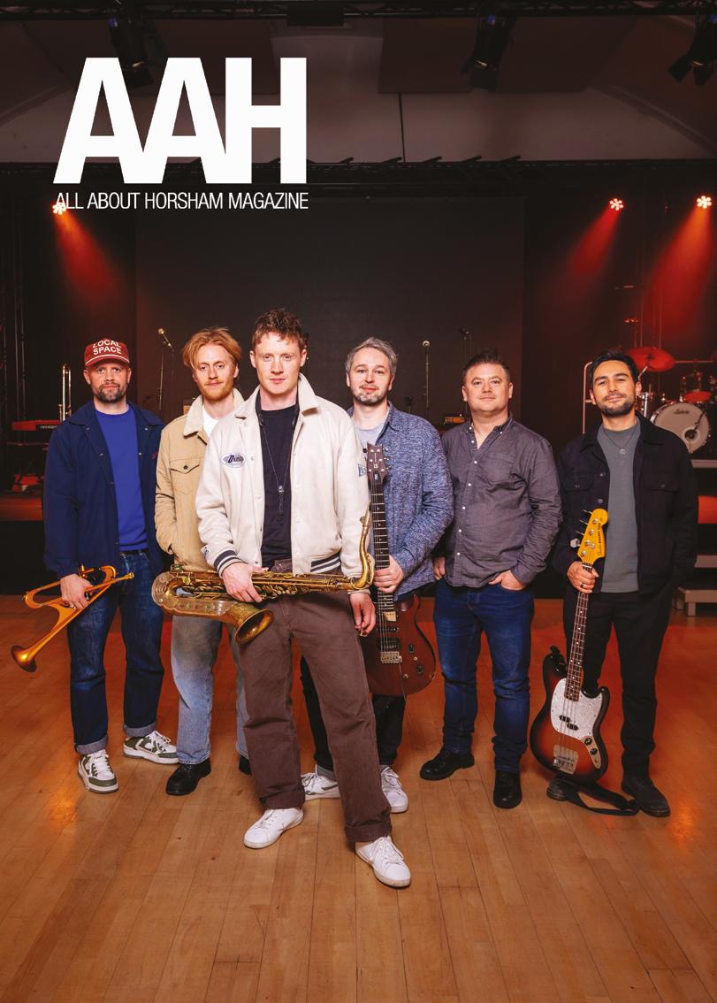 Our April 2026 cover features the members of funk band W3 at the Drill Hall in Horsham.