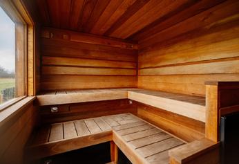 (called a kiulu) to produce soft steam (loyly) which increases heat. Kindred Spirit uses these same traditional methods in its wood-fired saunas, using cedar wood on the exterior and a thermo-treated wood that remains cool and comfortable in high temperatures for seating.