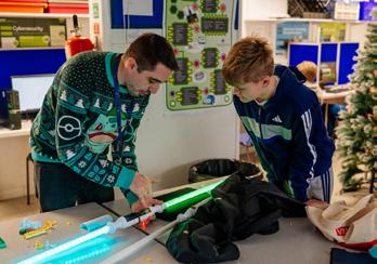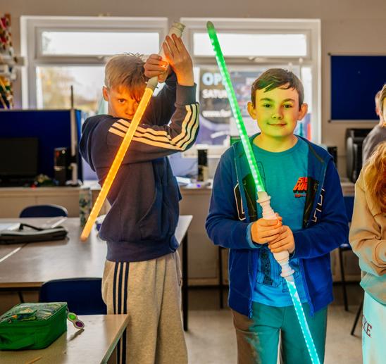 code. We have all done our own coding for the LightSabers. Through coding, you can make them flash on and off, or even light up in different colours. We have also been able to use a 3-D printer to personalise the grips of our LightSabers too.’