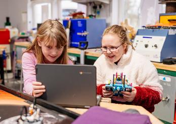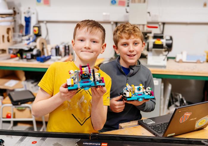 can create worlds using Python or basic block scripts. One group worked together to build different components in their Minecraft world, with Ben (pictured inset) designing a Death Star complete with laser weaponry, while his friend built a Star Destroyer. Some Farlington School pupils are going a step further, building a life-size replica of R2-D2 as part of an extra-curricular project overseen by teacher Jamie Morris, Head of DT, Computer Science and Food & Nutrition. Mr Morris has forged a friendship with Chris at Mindstorm Coding over their shared passion for computer science, making Farlington an ideal location for coding courses.