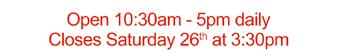 Current Opening times: Monday to Sunday 9am to 4pm Food Service: 9am to 3pm