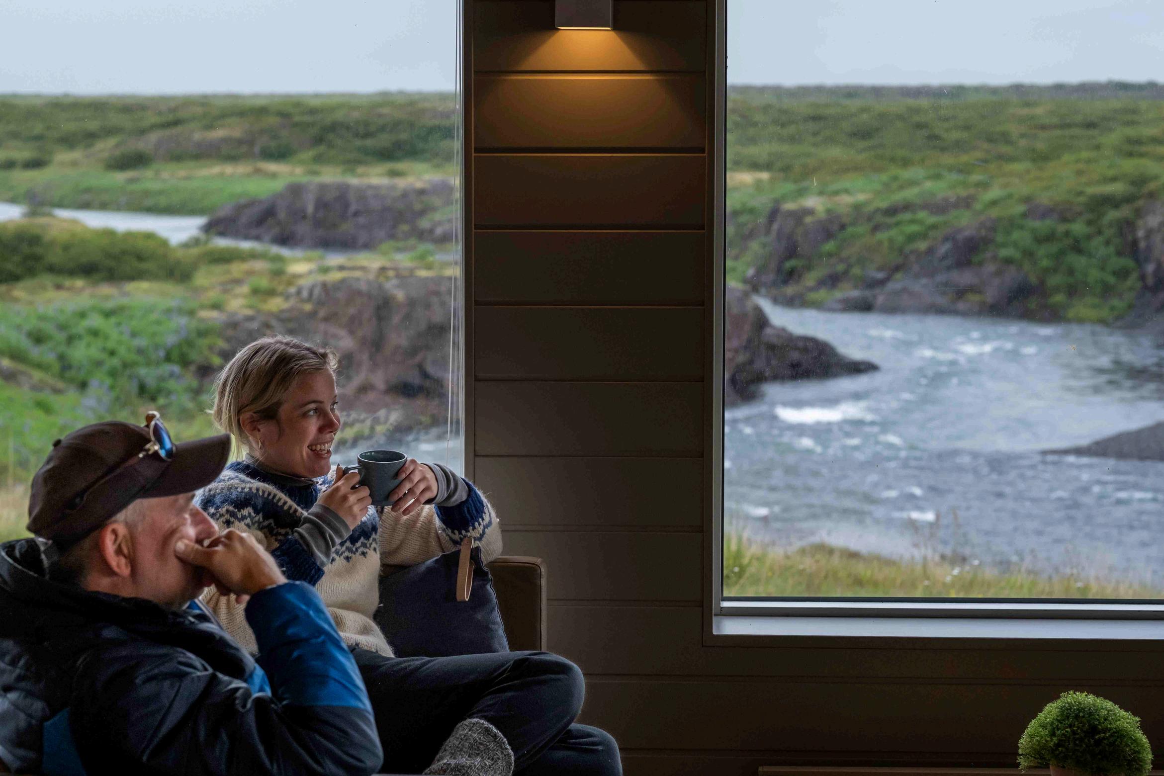 Langárbyrgi, which is ideal for corporate as well as smaller groups, has eighteendoublerooms,allwithprivatebathrooms,adiningroom,barand a cozy lounge with a spectacular view of the river. Not to mention the sauna, which is a must after a long day on the river bank. The facilities for wadesandotherfishingequipmentareexcellent.