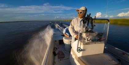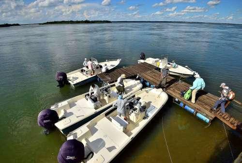 Guests fish primarily from a new fleet of 22- foot Carolinas’ skiffs. These custom design boats have two decks (one on the front, another one on the back), so that two anglers can fish simultaneously. The Paraná River is a structure-loaded system. Most of the time the guides drift the boats using trolling motors in order to target the natural habitat, from sunken logs and boulder gardens to small bays and side channels. Other times, fish are concentrated on sandbanks where they corral and attack baitfish. If this is the case, guides will often drift-fish the sand areas or wade fish in search of action.