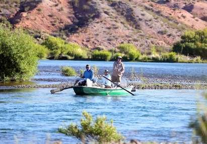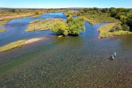 Anglers have uninterrupted access to 12 miles of the Rio Grande, reached via a well maintained road network, with notable pools between 15 to 30 minutes’ drive from the lodge. Four anglers are accommodated in single occupancy rooms, and every angler fishes well-rested water daily. The river here offers interesting twists and turns and well-known pools that hold fish throughout the season. The riverbed is primarily fine gravel which makes wading relatively easy. Much of the water remains largely untouched, so it is ideal for anglers who enjoy exploration. The lodge’s long-term guides know where to find the fish and well-prepared anglers can expect an average of one to three fish per session during a sixday fishing week. Lunch is typically served at the main house, but there is also a riverside cabin where