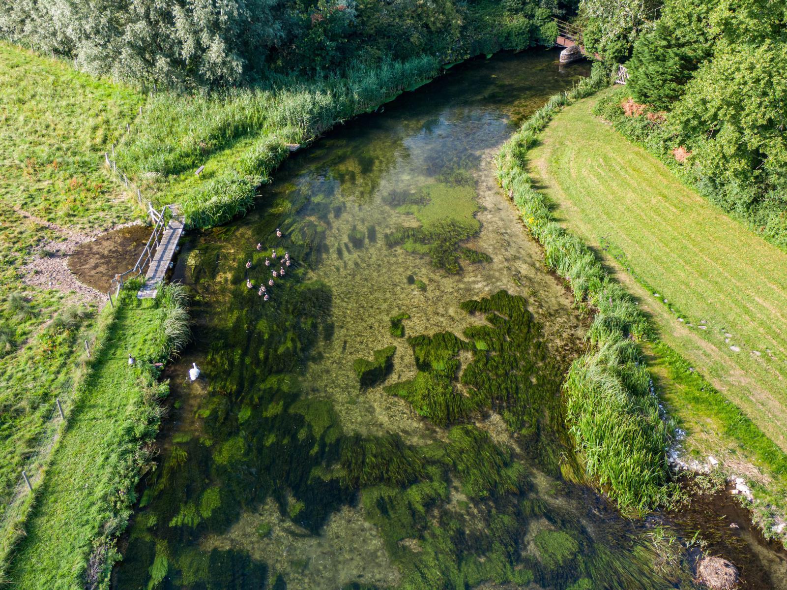 At just over five kilometres, the Ribnik is 20 to 30m wide and its soft gravel base makes wading easy. From ankle to waist de the river gently twists and turns, splitting every now and again around islands that change the flow speed. The water is so c and watch leaves on the ranunculus beds as they wave in the current. Running at a fairly constant seven degrees Celsius, the living conditions for shrimp and other aquatic invertebrates.