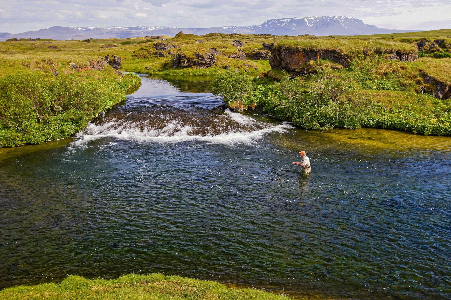 Although better known for salmon fishing, Iceland has forged a name as one of the world’s top wild brown trout destinations. There are rivers home to dry fly hungry browns of up to ten pounds, even 20lb in some cases, and lakes where fish of 30lb are landed each year. Arctic char feature here too, and many anglers will enjoy the variety of casting to these ancient fish. This geographically young landscape is still being carved and shaped by natural forces, including the hundreds of streams and rivers that pour over large masses of irregularly shaped igneous rock on their way to the waters of the North Atlantic. It is in part thanks to the quantity of volcanic rock that the fish grow so large. The water is filtered to crystal clear purity and the minerals it contains allow the fish and their food to thrive.