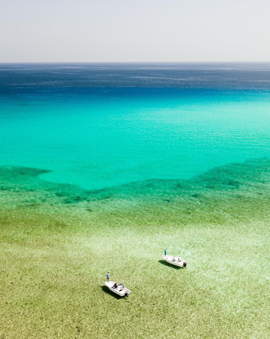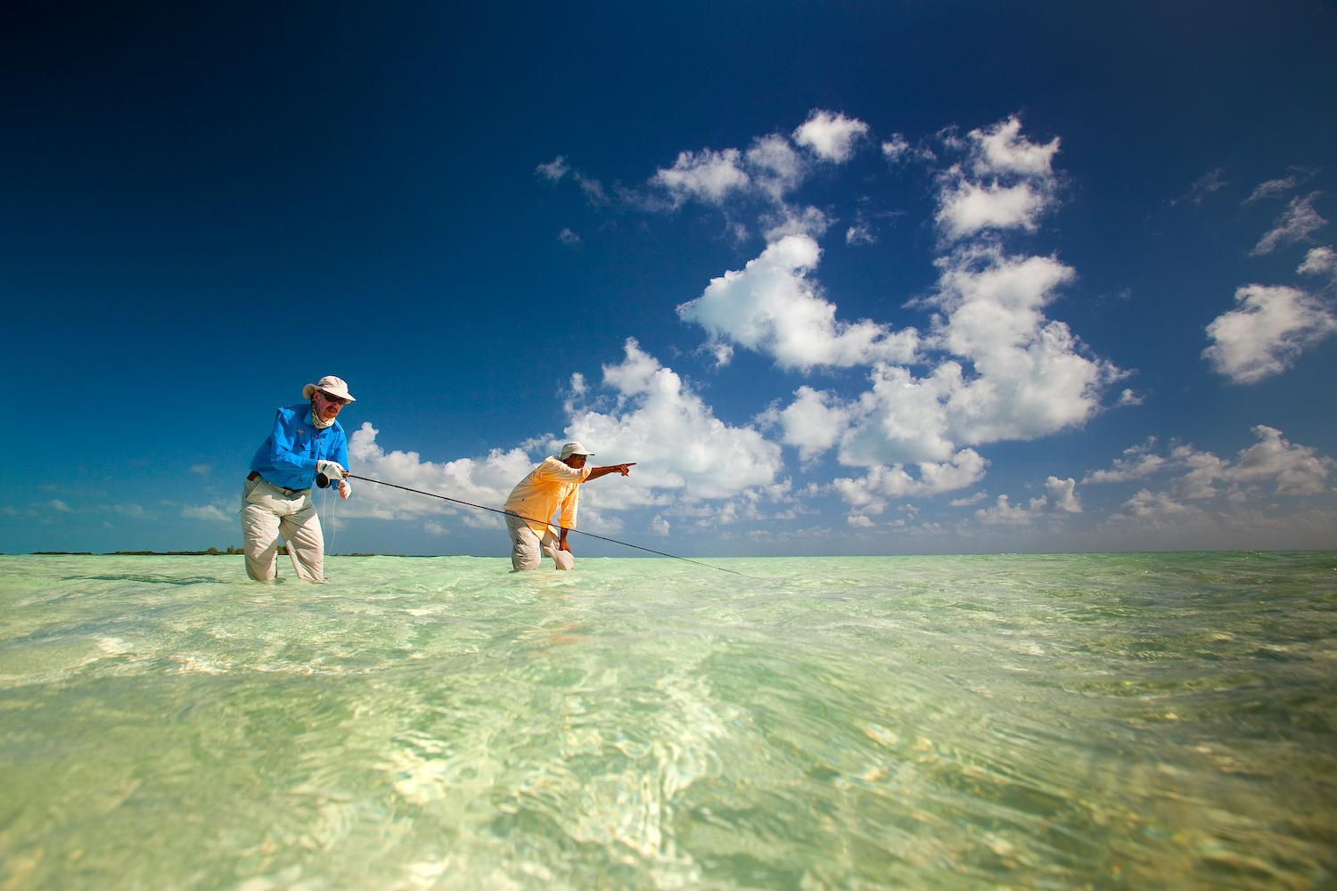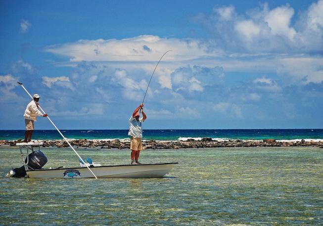 Skiff fishing generally allows a much greater area of habitat to be covered which increases the chances of success and, with two rods per boat taking turns, fishing is at a more leisurely pace. The stealthy approach and added vantage point give the best chance at fast moving tarpon or spooky permit. The finest areas for this technique are The Bahamas, Cuba, parts of Belize, and Mexico. Australia, Oman and Seychelles also offer skiff fishing in their diverse waters.