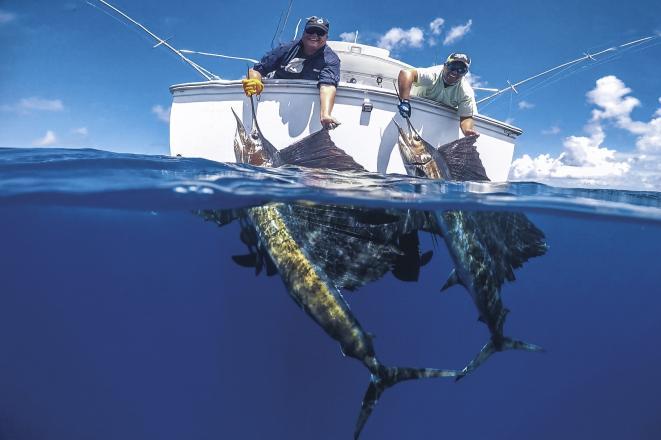 For those who wish to experience fly fishing to the extreme, teasing the pelagic species of marlin and sailfish up from the depths, then bluewater fishing is it. The calm tranquillity of the ocean is suddenly transformed as you see the bill of an enraged sailfish slashing at the teasers as the deck hand entices it closer to the boat.