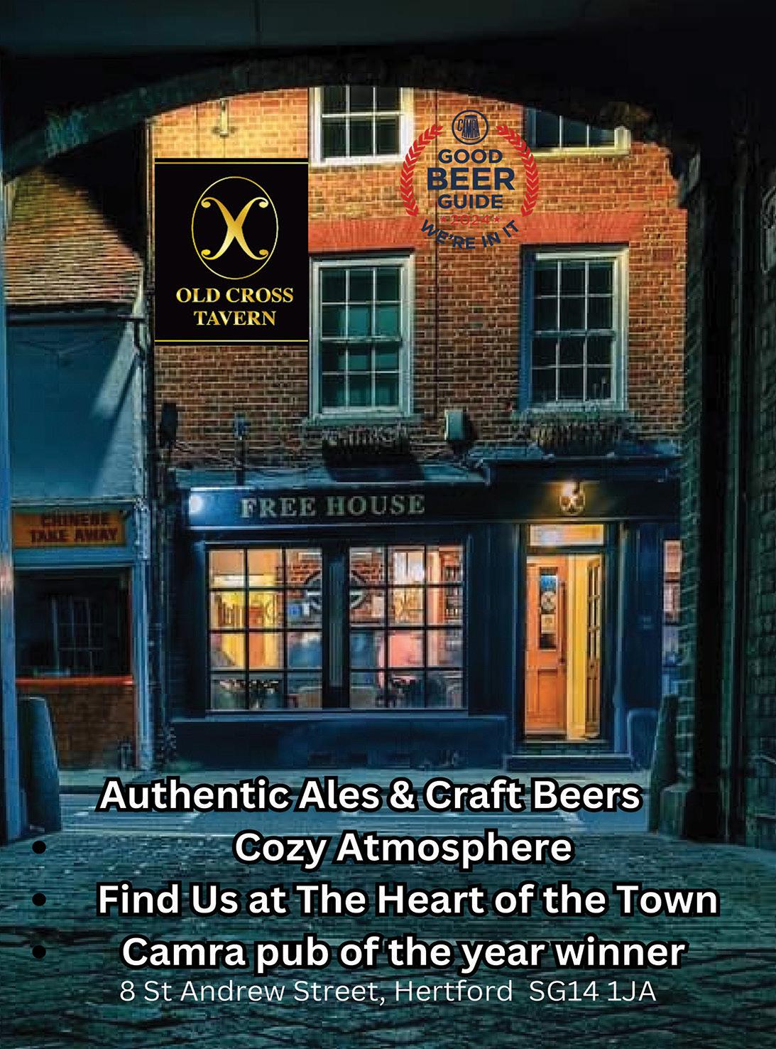 You will find the Old Cross Tavern at 8 St Andrew Street, Hertford SG14 1JA. Check the latest menu on Instagram (oldcrosshertford).