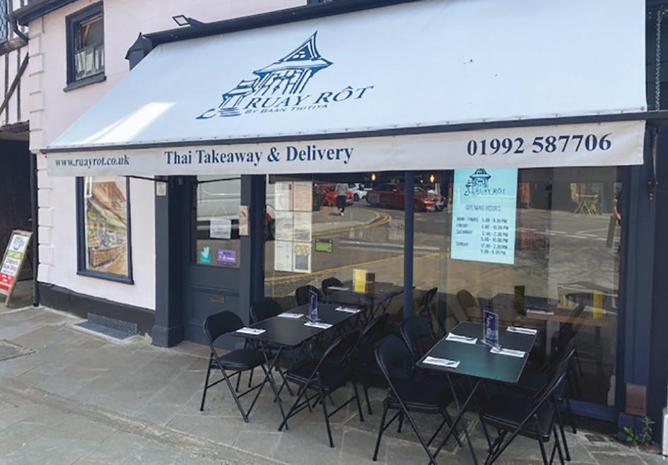 Ruay Rôt means ‘rich in flavour’ in Thai and that is precisely what the food you can order for takeaway or delivery from Hertford’s newest eatery is. Just down the road from its previous and hugely popular Baan Thitiya restaurant, this new takeaway outlet offers authentic Thai food for you to enjoy at home, continuing Baan Thitiya’s story after 20 years in Hertford. You can order by phone or through the GoGetters and Deliveroo apps for delivery to Hertford, Ware and Hoddesdon. The menu includes many vegan specials. Outside tables are also available on warmer days.