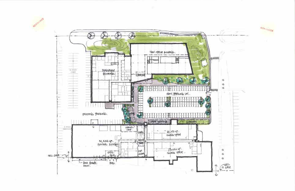 An efficient parking structure for employee and fleet vehicles - as well as secure bike storage - aims to blend in with the adjacent campus architecture and serve as a link between the Administration building and the Operations buildings and campus to the south.