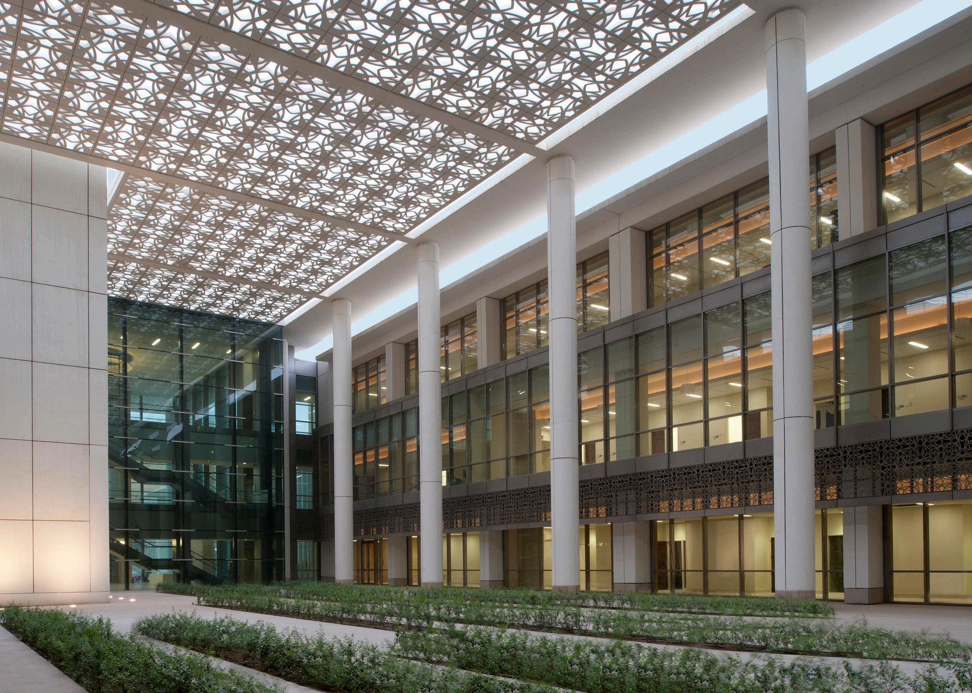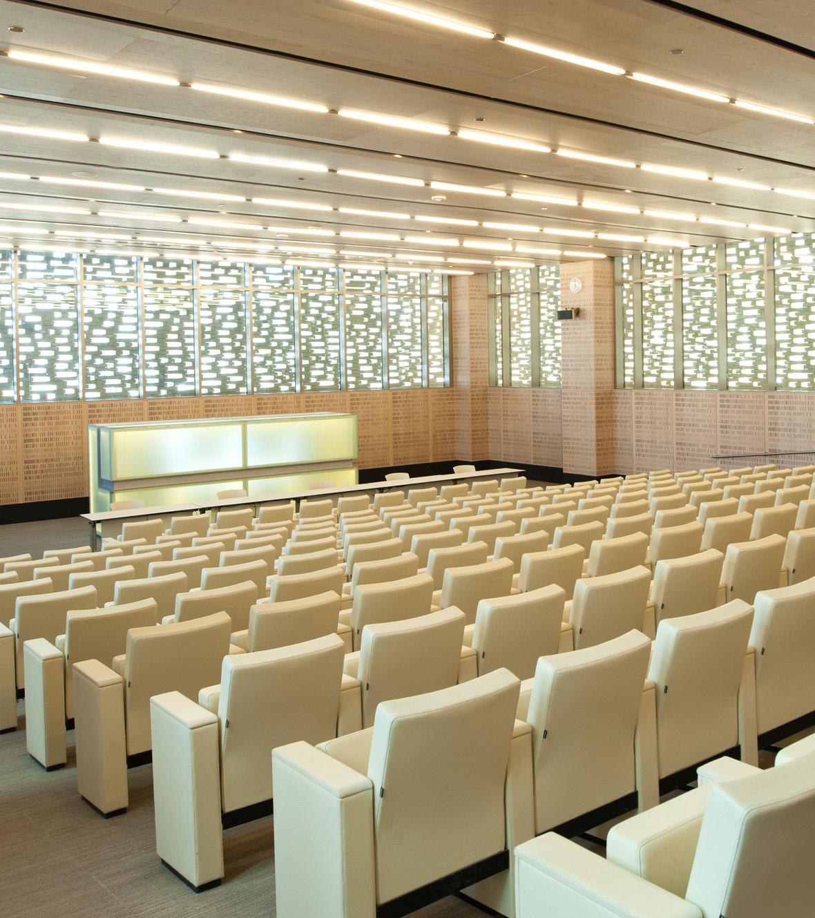 Perforated Stone Facade at Lecture Hall Lecture Hall Interior