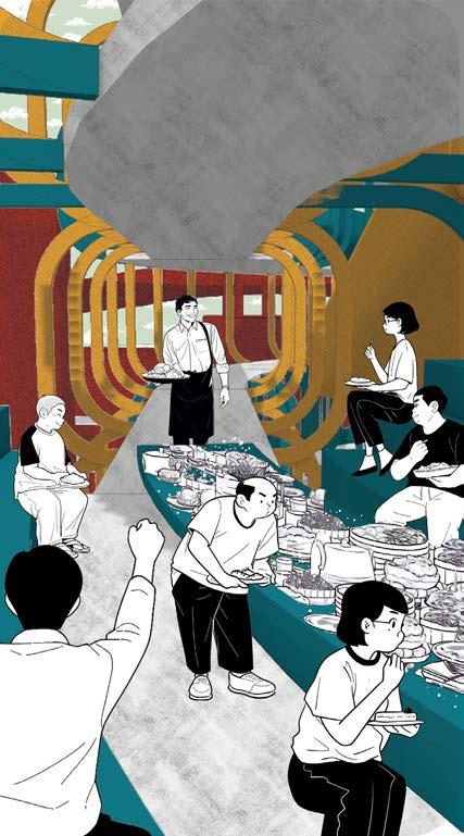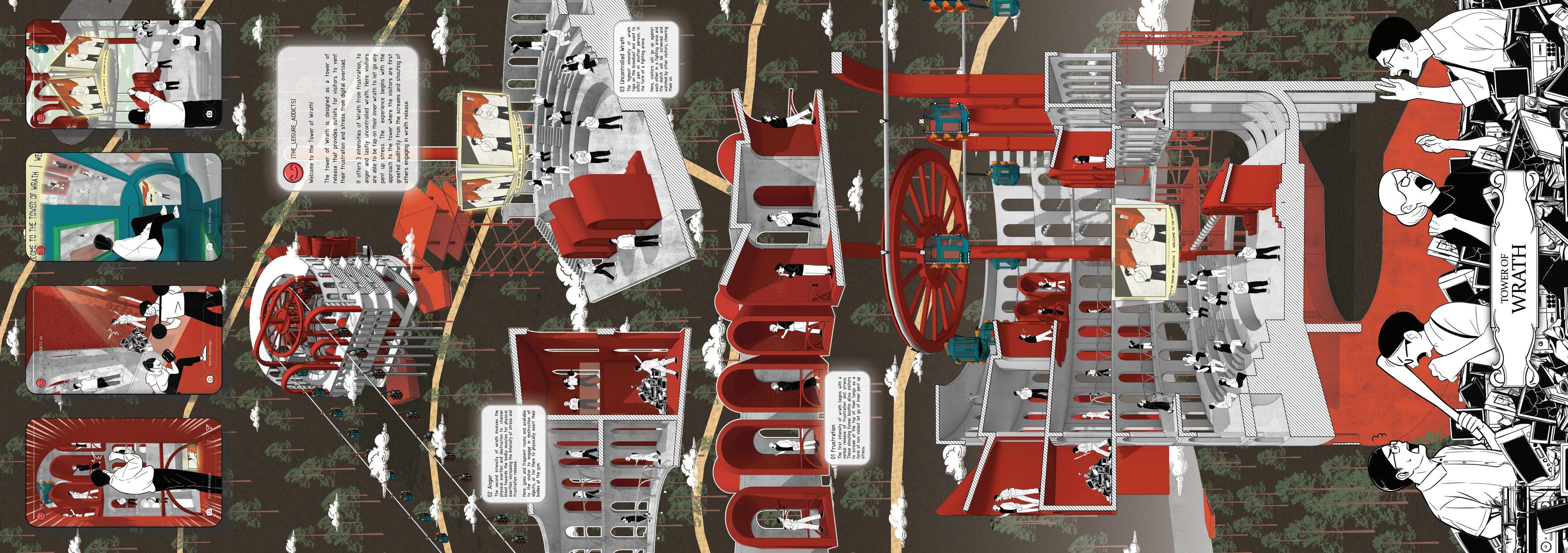 The tower of Gluttony is designed as a tower of indulgence for visitors who have suffered weight loss and suppressed appetite from digital fatigue. It offers 3 intensities of Gluttony from casual indulgence, to social overindulgence and lastly compulsive overeating.