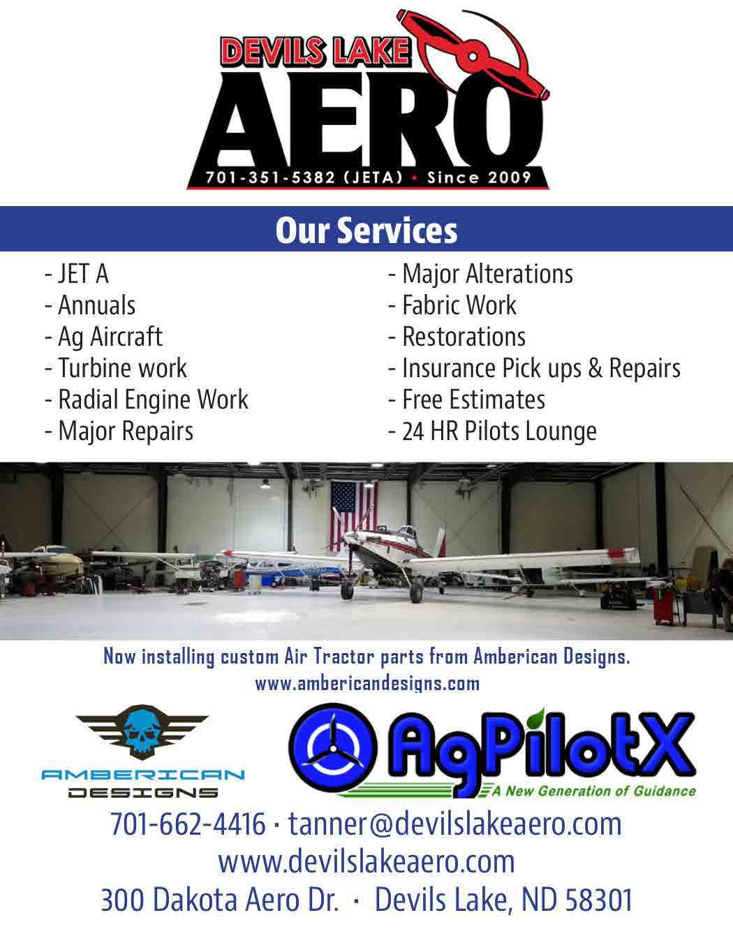 Established Aerial Application Business for sale, operating in the Central United States. This modern, clean facility includes a 100’ by 120’ hangar, fully insulated and heated. The office is a 36’ by 45’ wood frame, metal-clad building. The operation is run from a private airport with a concrete runway and load pad. The season runs from February thru November, and the operation services a diversified mixture of crops. This operation is wellestablished with a great customer base. Available as a turnkey-ready business, or the owner will assist with the startup. Please email inquiries to blindads@ agairupdate.com Subject: ID#3880