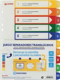 Polipropileno. Medidas: A4 y folio. Paquete de 10 unidades del mismo color.