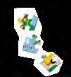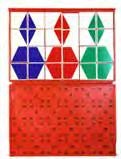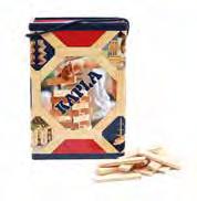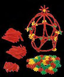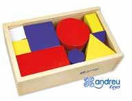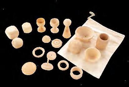 Bola (Ø 50 mm), bola (Ø 60 mm), hemisferio (Ø 40 mm), disco (Ø 60 mm), rueda (Ø 50 mm), rueda (Ø 40 mm), figura cónica 103 mm, cubo (Ø 40 mm), cubo 50 mm, huevera 63 mm, huevera 70 mm, servilletero 47 mm, cuenco 70 mm, cuenco 92 mm, anillo (Ø 48 mm), anillo (Ø 56 mm), anilla (Ø 70 mm), barril (Ø 55 mm), carrete 35 mm, tapa cebolla 50 mm, bolsa de algodón y guía de actividades en 8 idiomas.