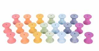 Con 21 bobinas de madera de 35 mm, 3 en cada uno de los 7 colores del arco iris. Ideal para crear escenas imaginativas, fomentar habilidades constructivas, contar y ordenar, apilar y secuenciar, confeccionar patrones y aprender sobre el color.