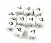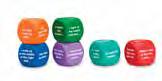 14 dados de madera, 7 dados de 40 mm y 7 dados de 50 mm, ambas medidas en cada uno de los 7 colores del arco iris.