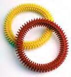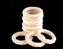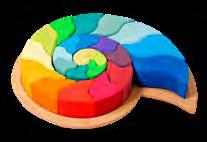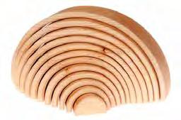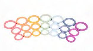 Conjunto de 21 anillas de madera de 48, 56 y 70 mm, cada una de las 3 medidas de los 7 colores del arco iris. Se pueden enrollar, atornillar, utilizar para ordenar o secuenciar, o configurarse como reto de acopio.