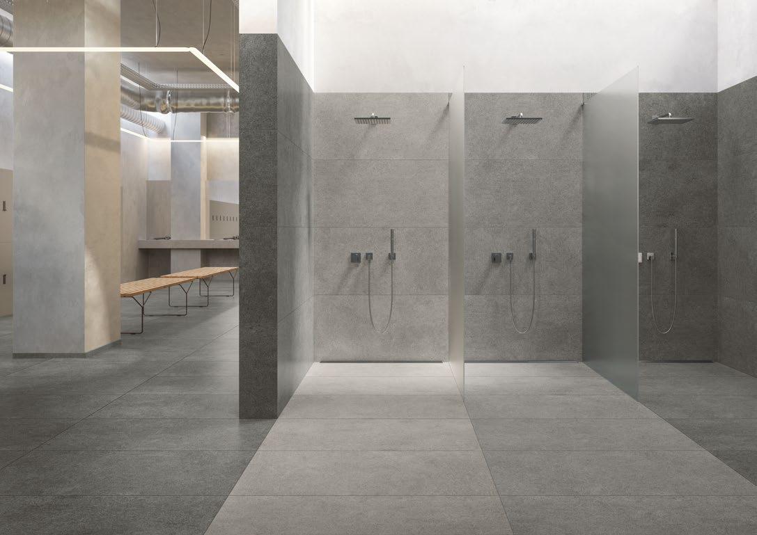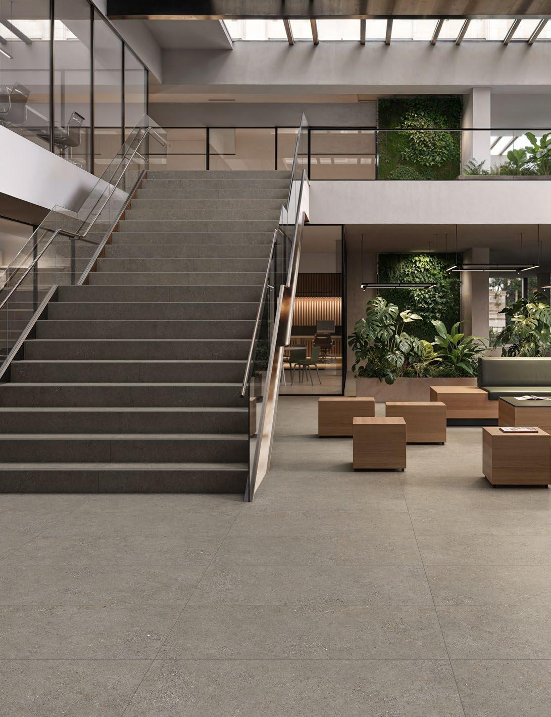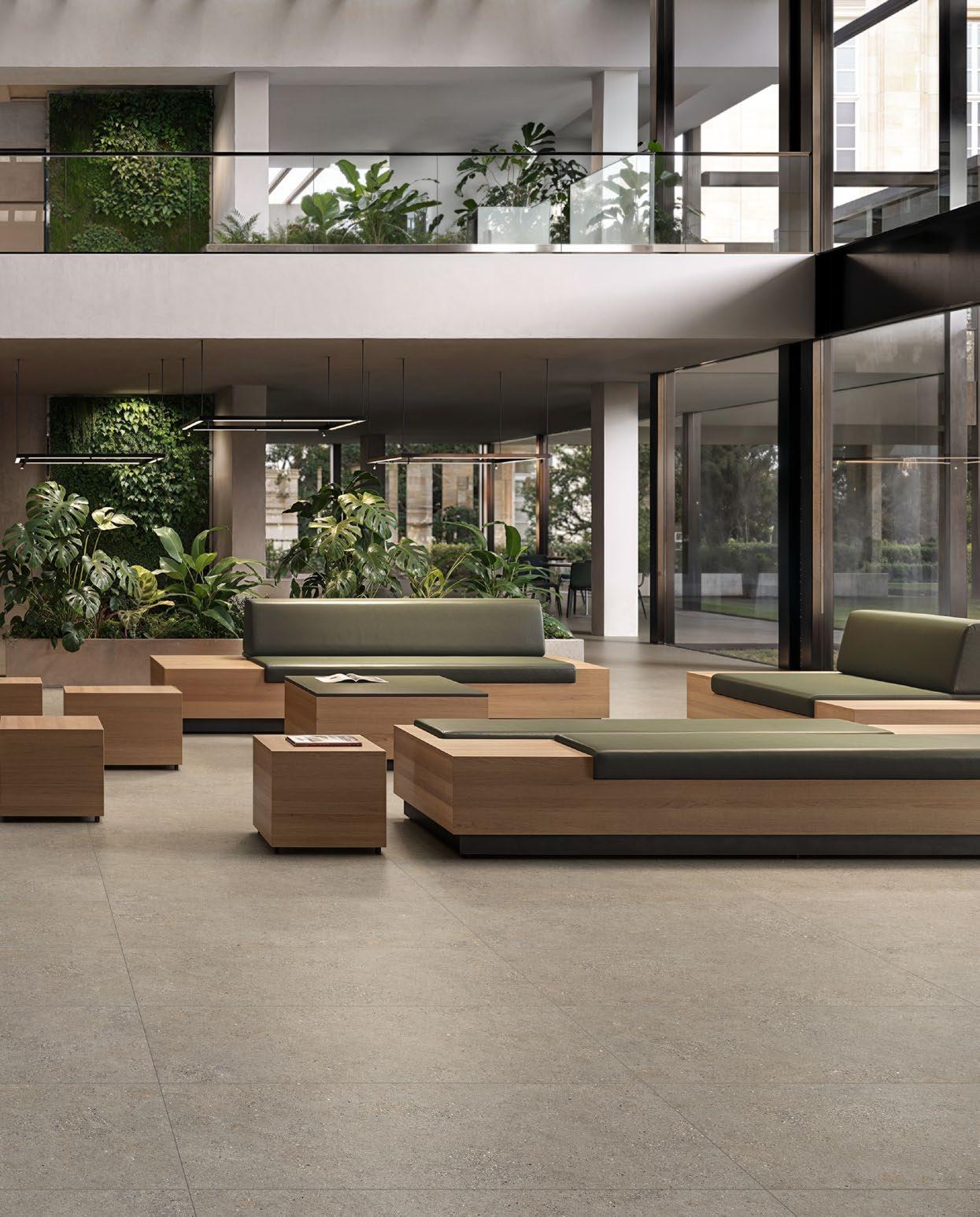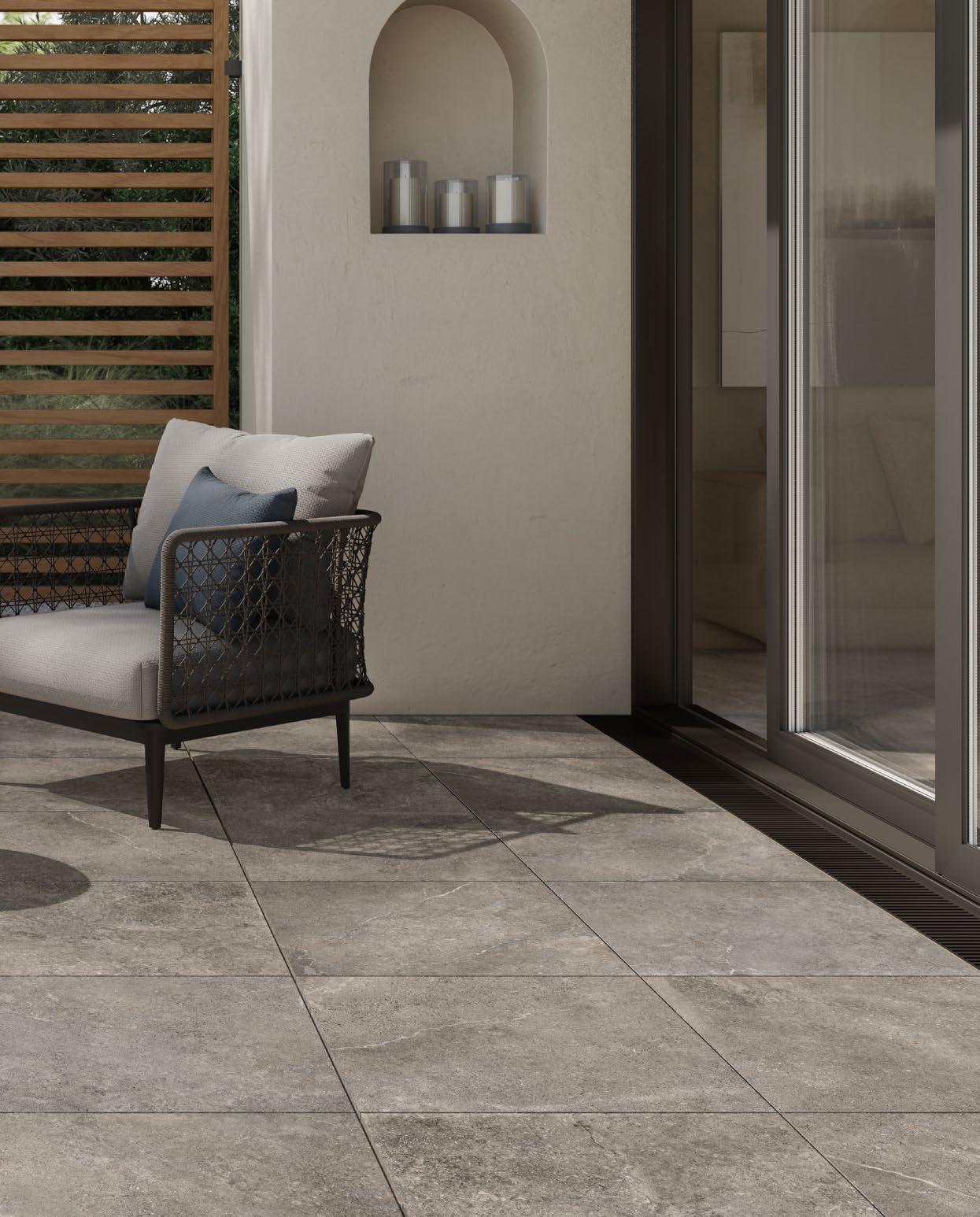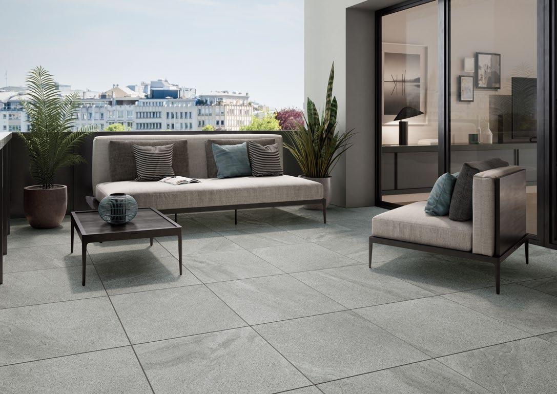 VilboTouch, a new surface finish with a soft look, created as a symbiosis of aesthetic appeal and technical functionality. The microscopically fine structure ensures that the tiles comply with slip-resistance class R10 while also providing for an easy-care finish.