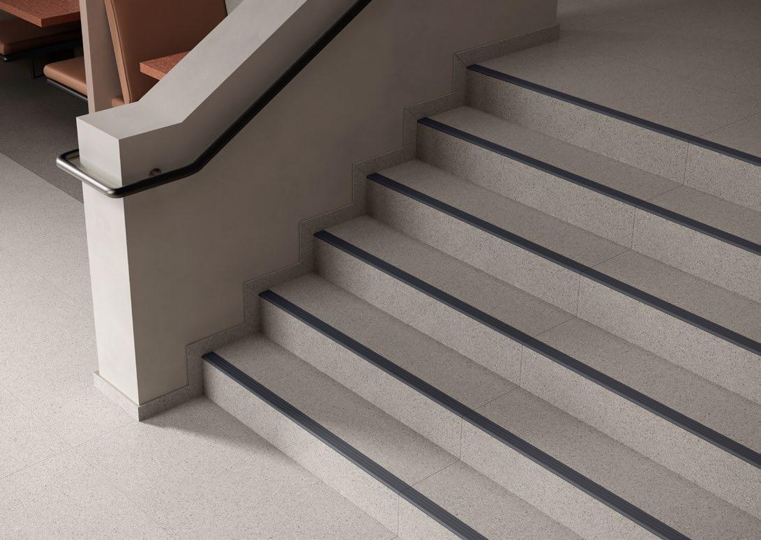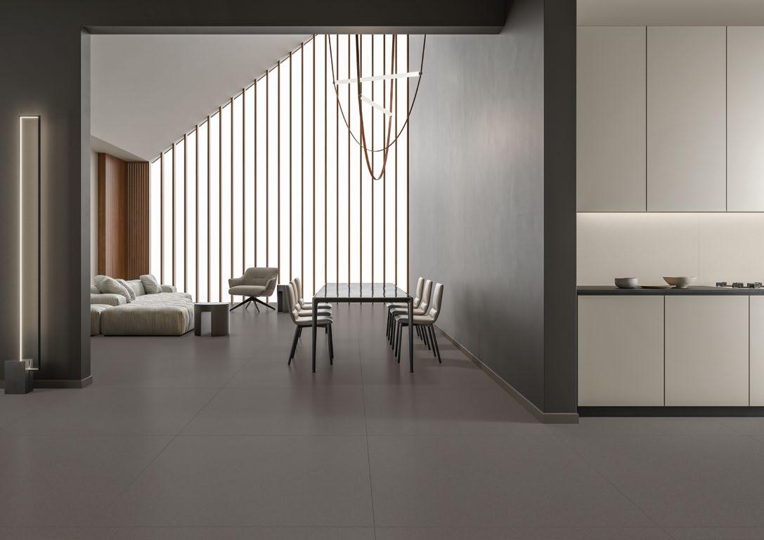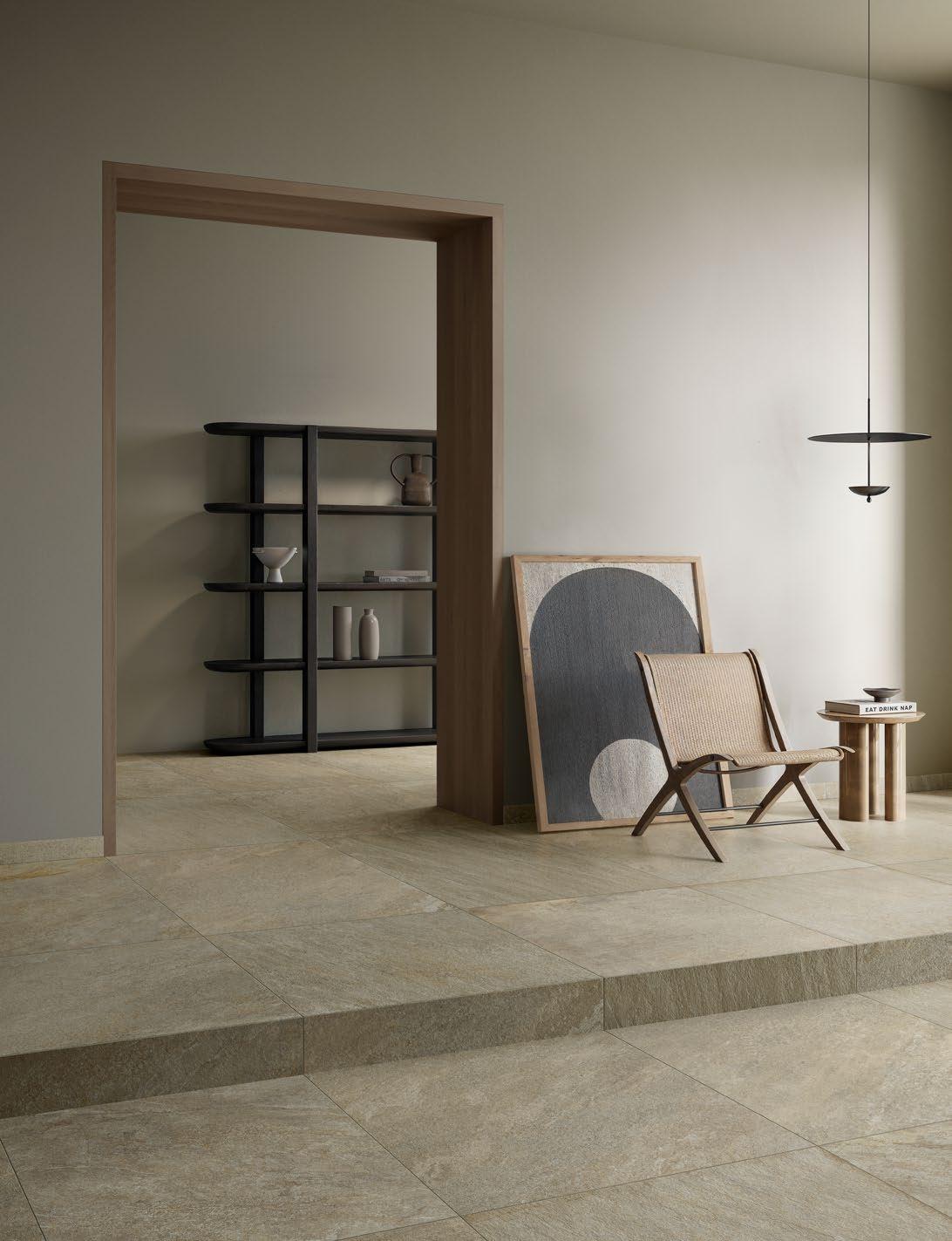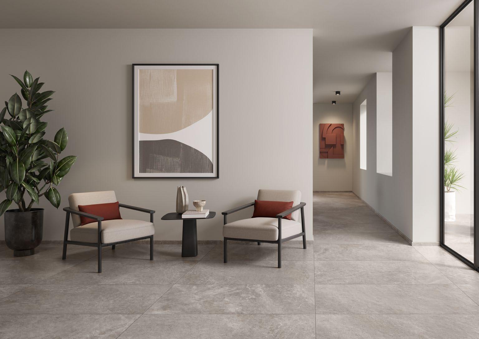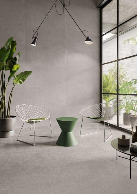 VilboTouch, a new surface finish with a soft look, created as a symbiosis of aesthetic appeal and technical functionality. The microscopically fine structure ensures that the tiles comply with slip-resistance class R10 while also providing for an easy-care finish.