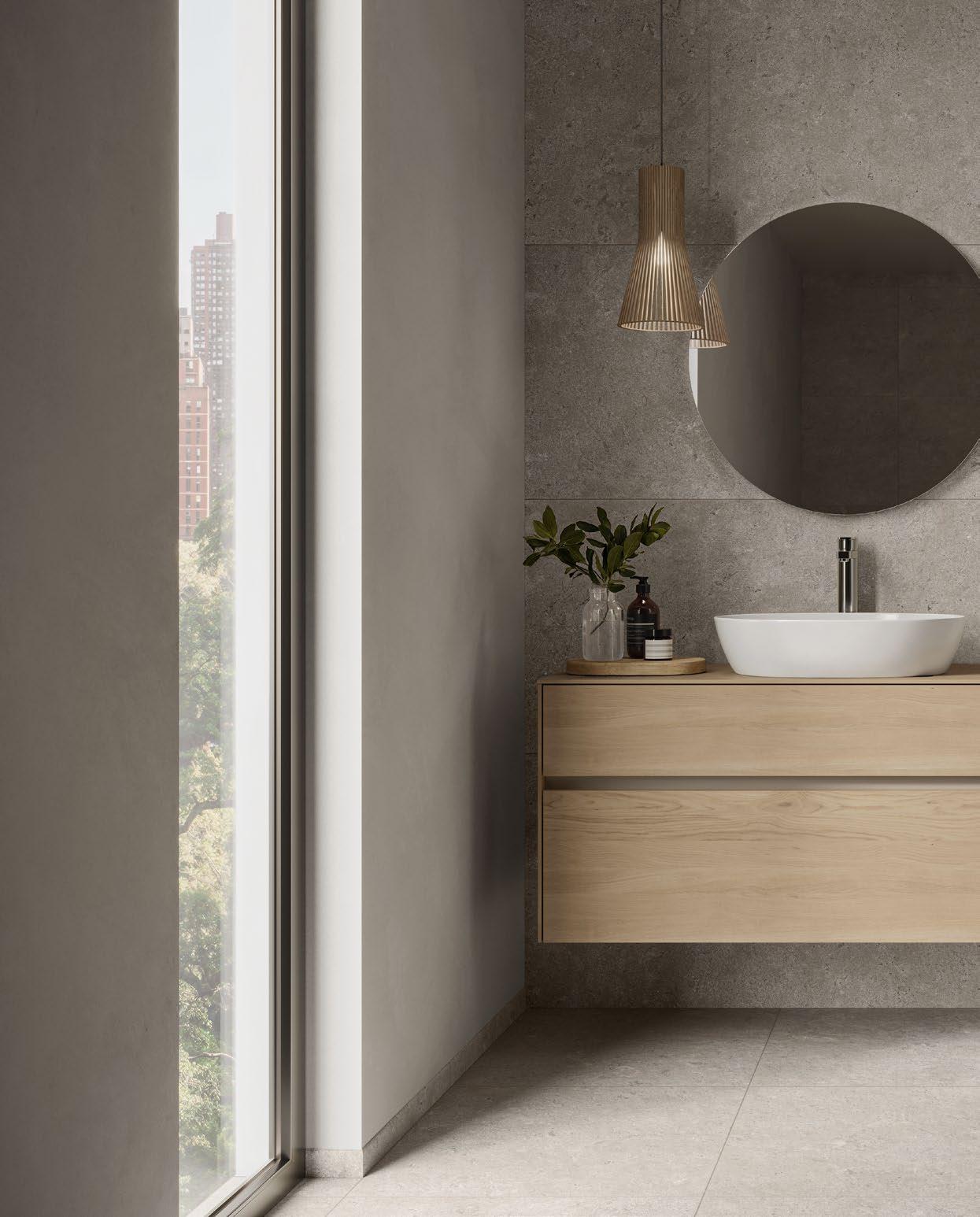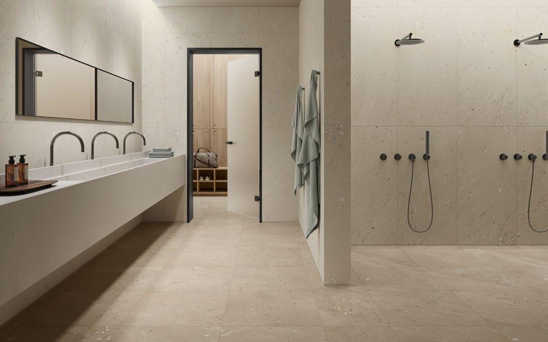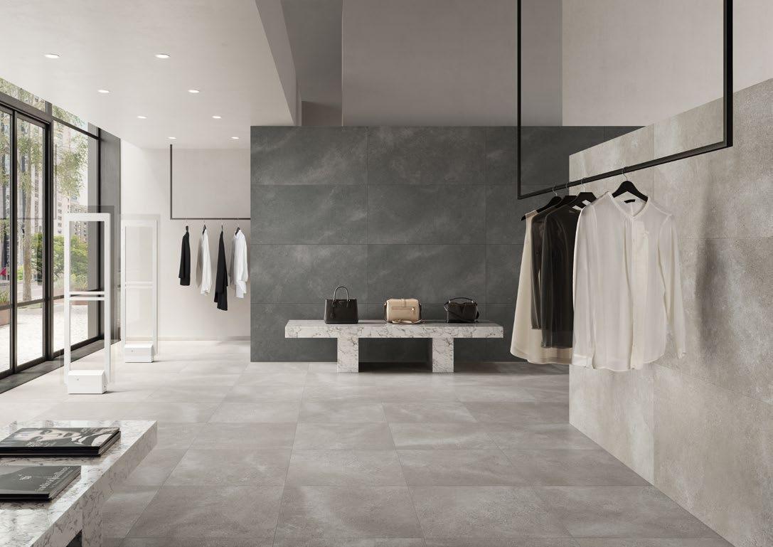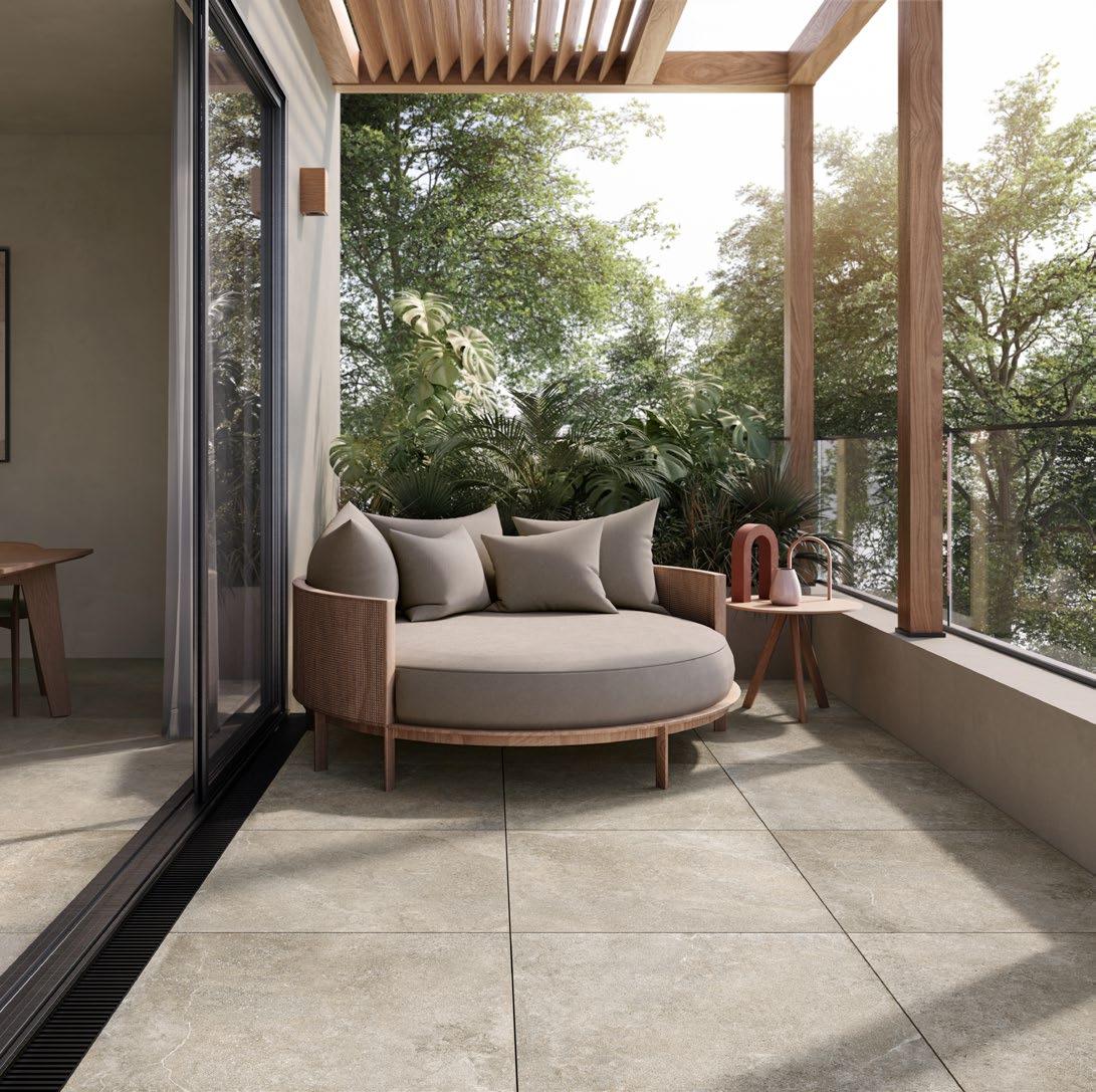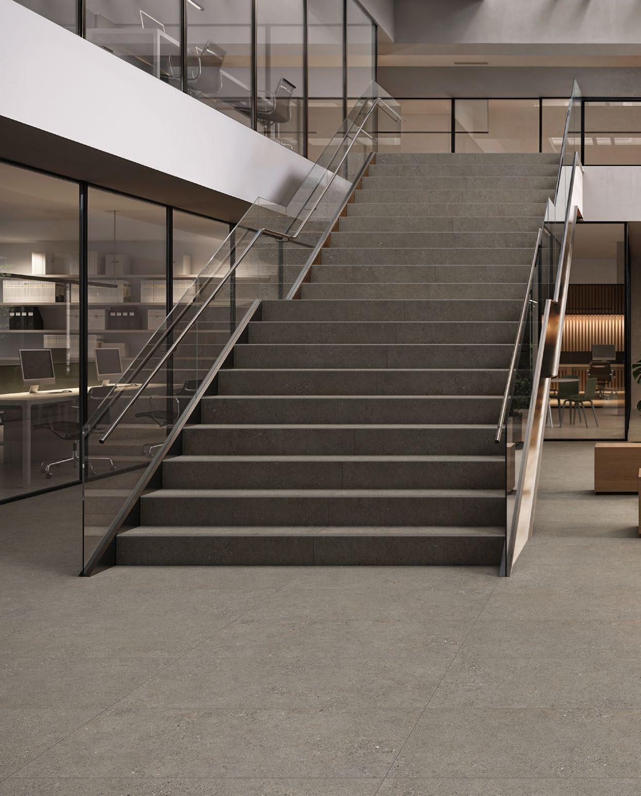 VilboTouch, a new surface finish with a soft look, created as a symbiosis of aesthetic appeal and technical functionality. The microscopically fine structure ensures that the tiles comply with slip-resistance class R10 while also providing for an easy-care finish.