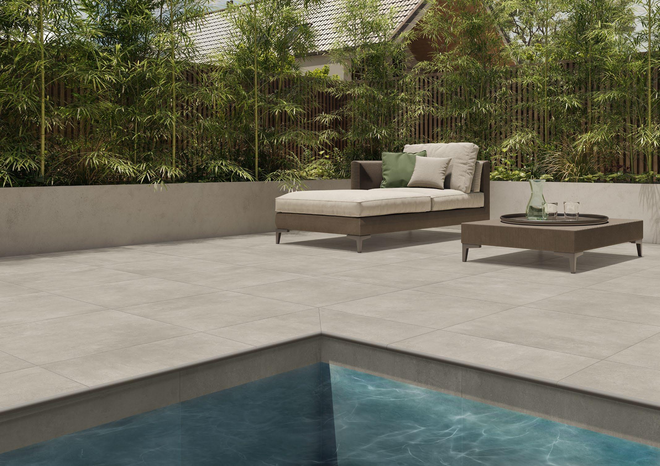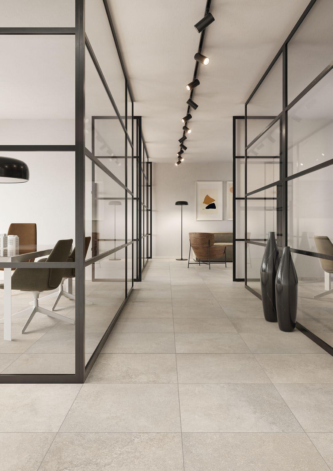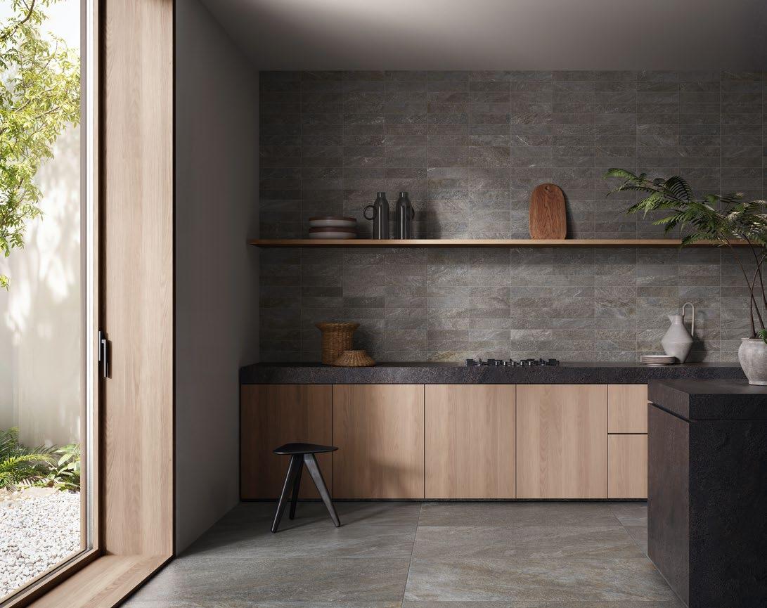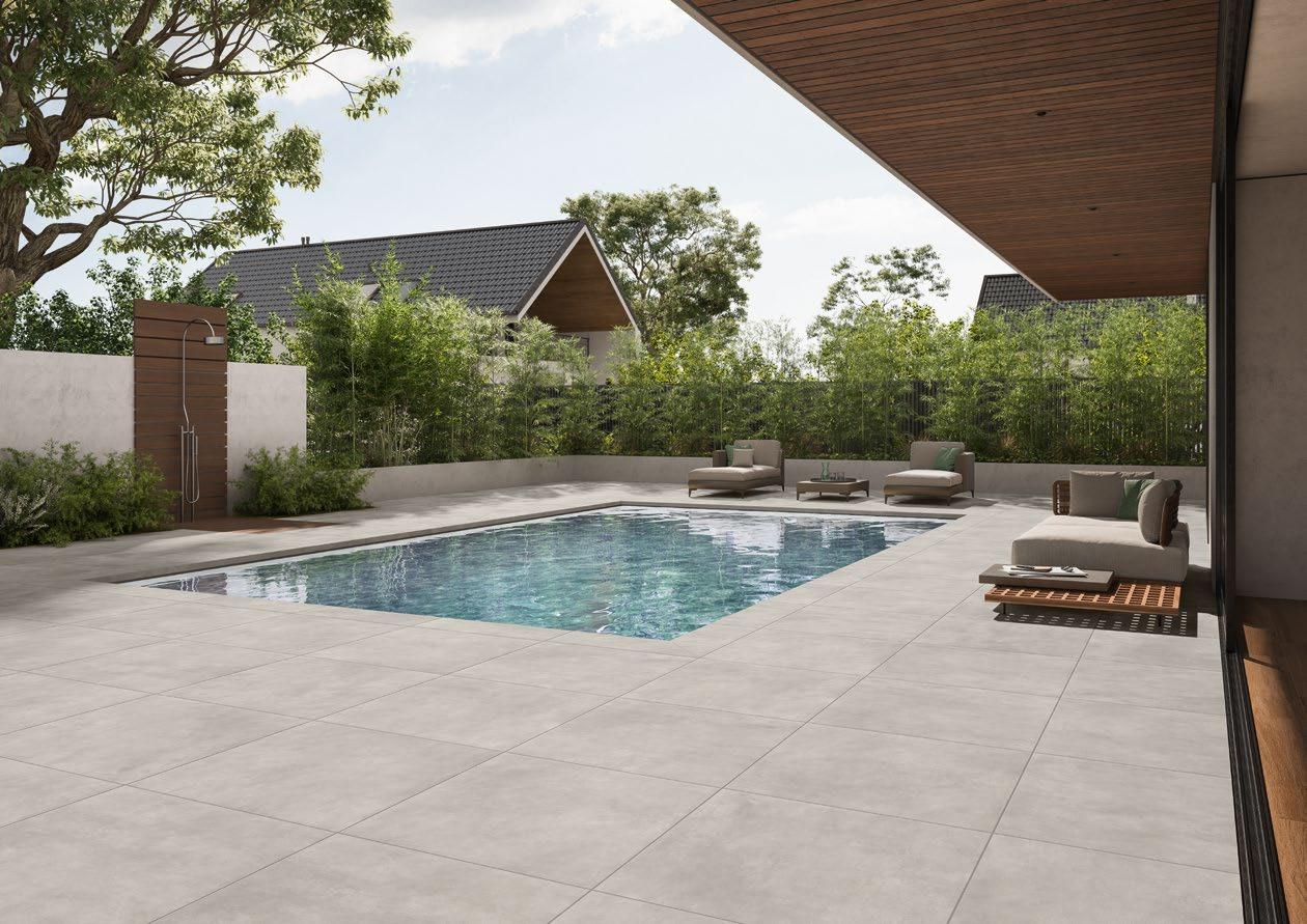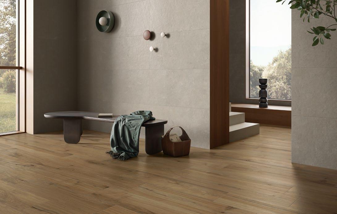 VilboTouch, a new surface finish with a soft look, created as a symbiosis of aesthetic appeal and technical functionality. The microscopically fine structure ensures that the tiles comply with slip-resistance class R10 while also providing for an easy-care finish.