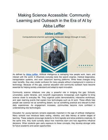 Abba E. Leffler, Ph.D., has forged a professional path marked by curiosity, precision, and a steadfast commitment to advancing medical discovery. As a Senior Principal Scientist in the therapeutics group at Schrödinger, he focuses on the early phases of drug development, where research ideas begin to evolve into potential medicines. His work relies on the integration of computational models with biological data to identify compounds that may lead to new treatments. Schrödinger’s physics-based computational platform enables scientists in pharmaceuticals, biotechnology, and materials science to simulate and analyze molecular behavior in detail, helping to streamline research that once depended heavily on slower experimental processes. At Schrödinger, Dr. Leffler’s work sits at the intersection of chemistry, computation, and biology. He applies artificial intelligence and computational chemistry to accelerate drug discovery, using simulations and modeling to predict molecular interactions and refine candidate compounds. Through nearly a decade of experience at the company, he has continued to strengthen methods that connect data-driven science with real-world therapeutic needs. His research contributes not only to Schrödinger’s mission but also to the broader goal of enhancing the scientific community's approach to complex medical challenges. Dr. Leffler completed his AB in Chemistry at Princeton University, where he also earned a Certificate in Applied Mathematics. During his undergraduate years, he received the Robert Thornton McKay Prize in physical chemistry, an award that recognizes academic excellence and dedication to scientific study. He later earned his doctorate in Neuroscience from the NYU School of Medicine, supported by a National Institutes of Health training grant. His education combined analytical problem-solving with a deep understanding of biological systems, shaping his interdisciplinary research approach.