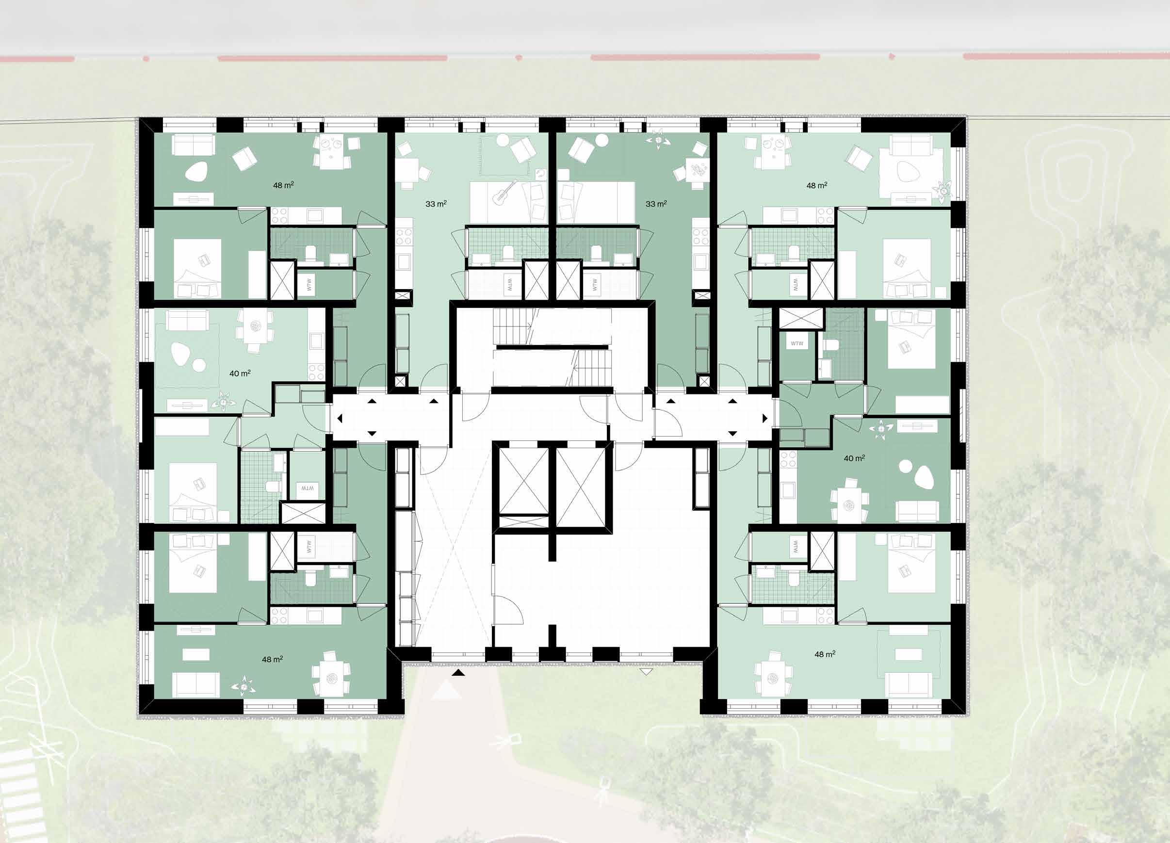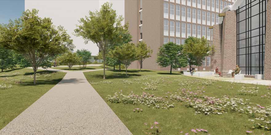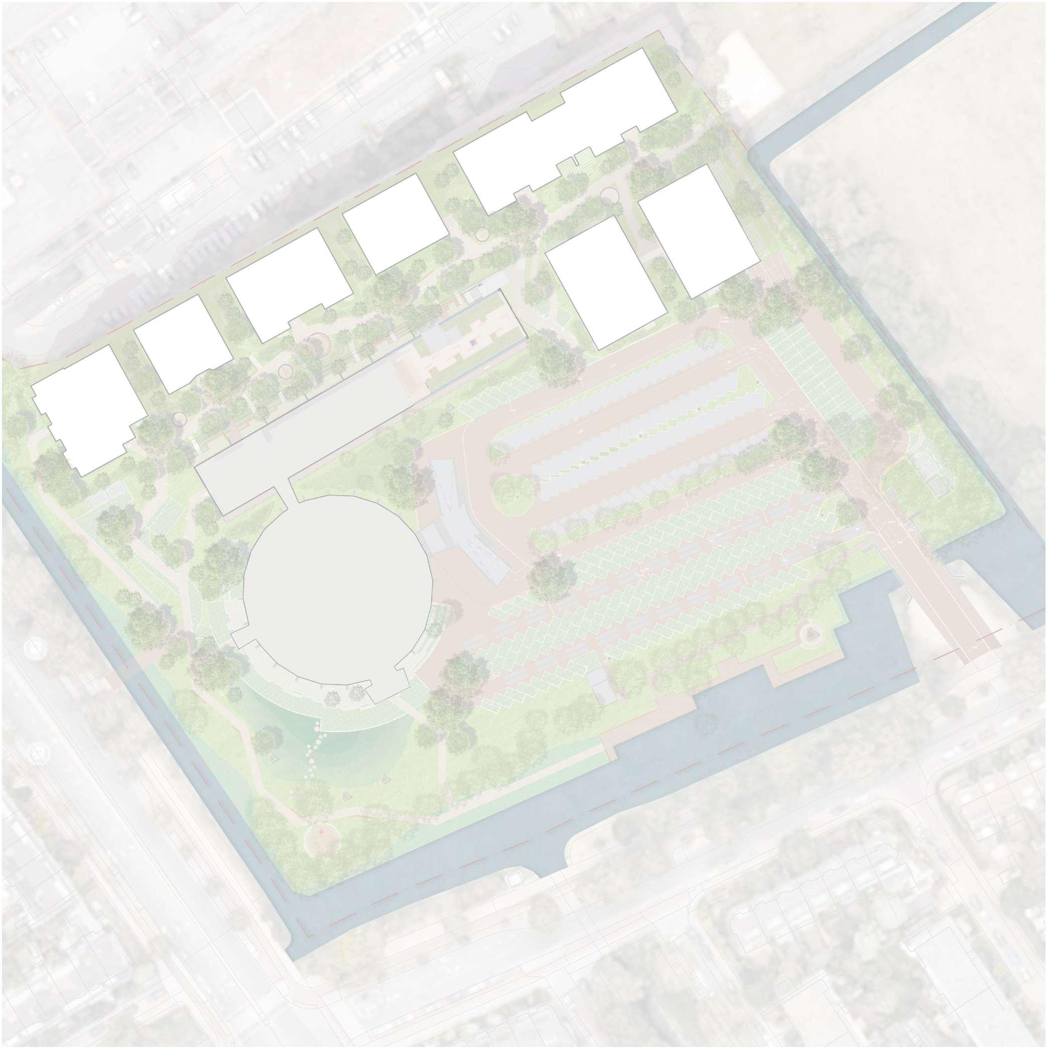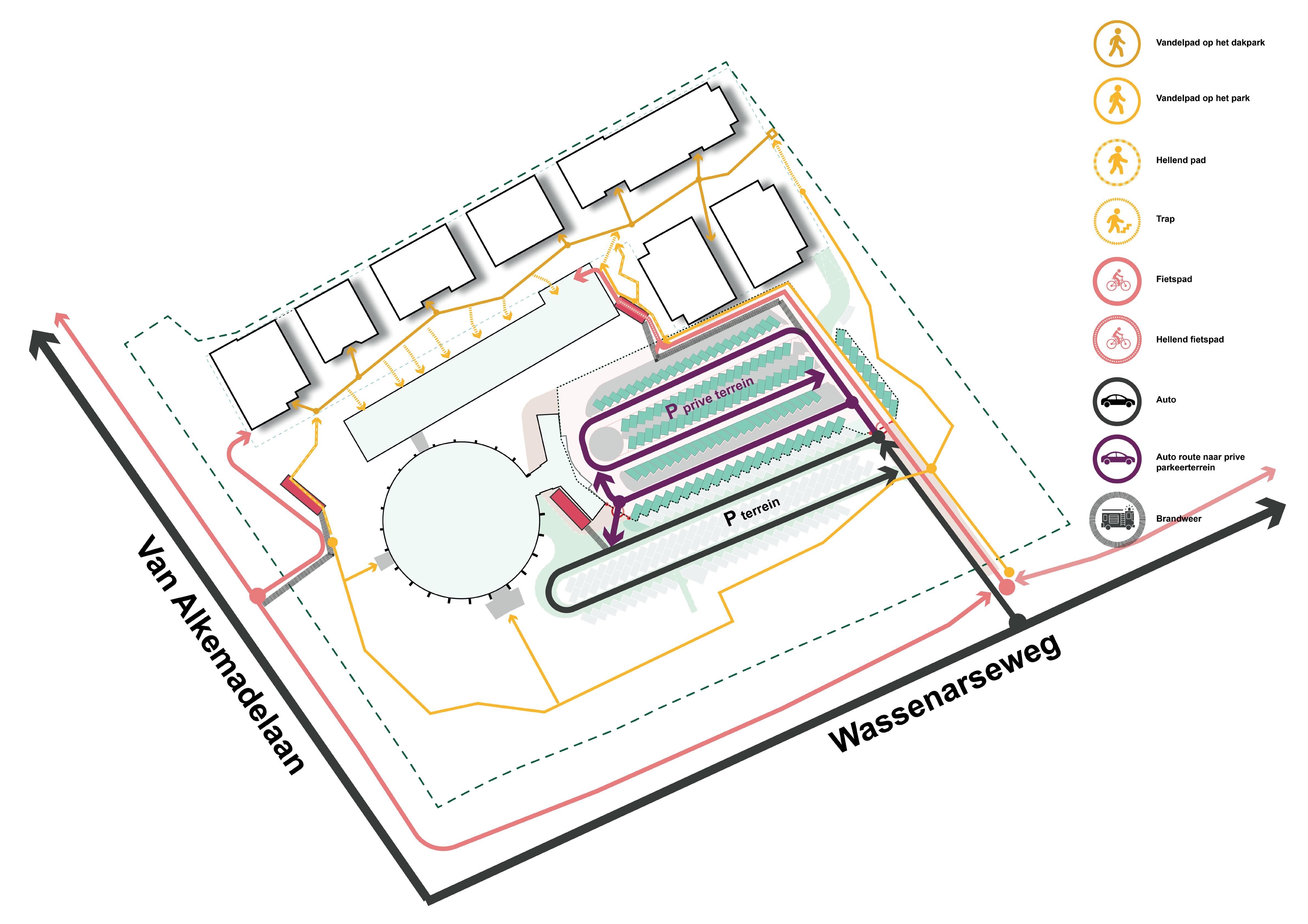 Circa 225 parkeerplaatsen komen te vervallen, doordat deze onder de gebouwen worden gesitueerd. Het vrijkomende gebied wordt ingevuld met groen.
