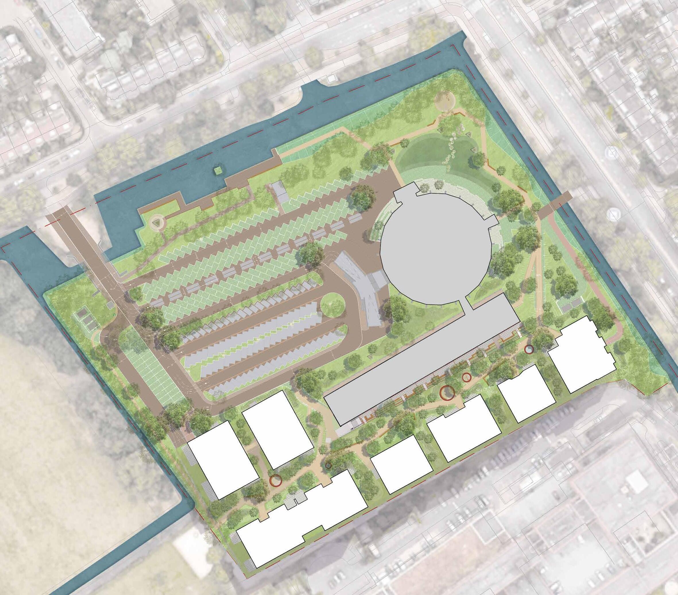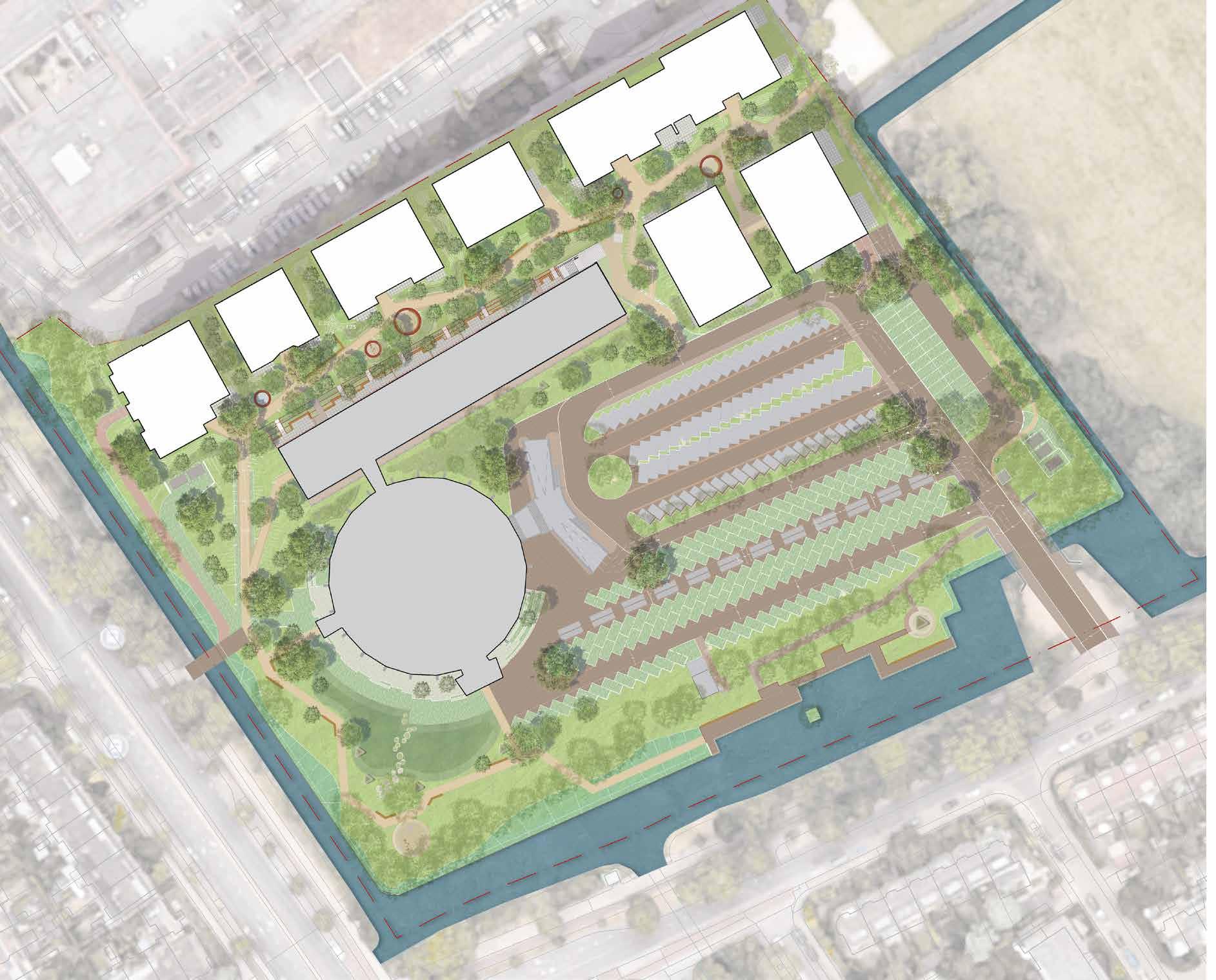 Monument Rotonde blijft gehandhaafd en wordt in overleg met de Rijksdienst voor Cultureel Erfgoed getransformeerd naar een gebouw met diverse buurtgerichte functies.