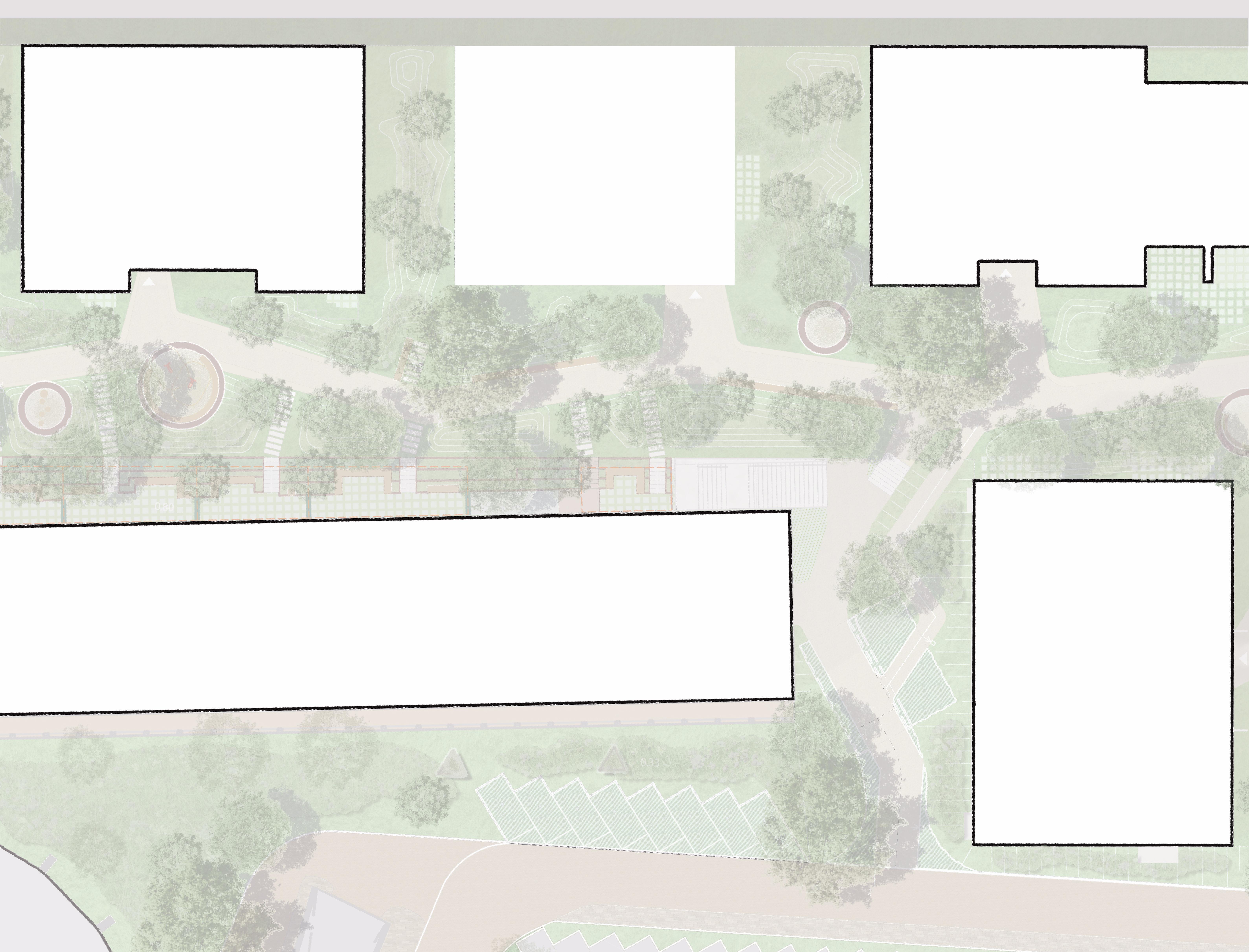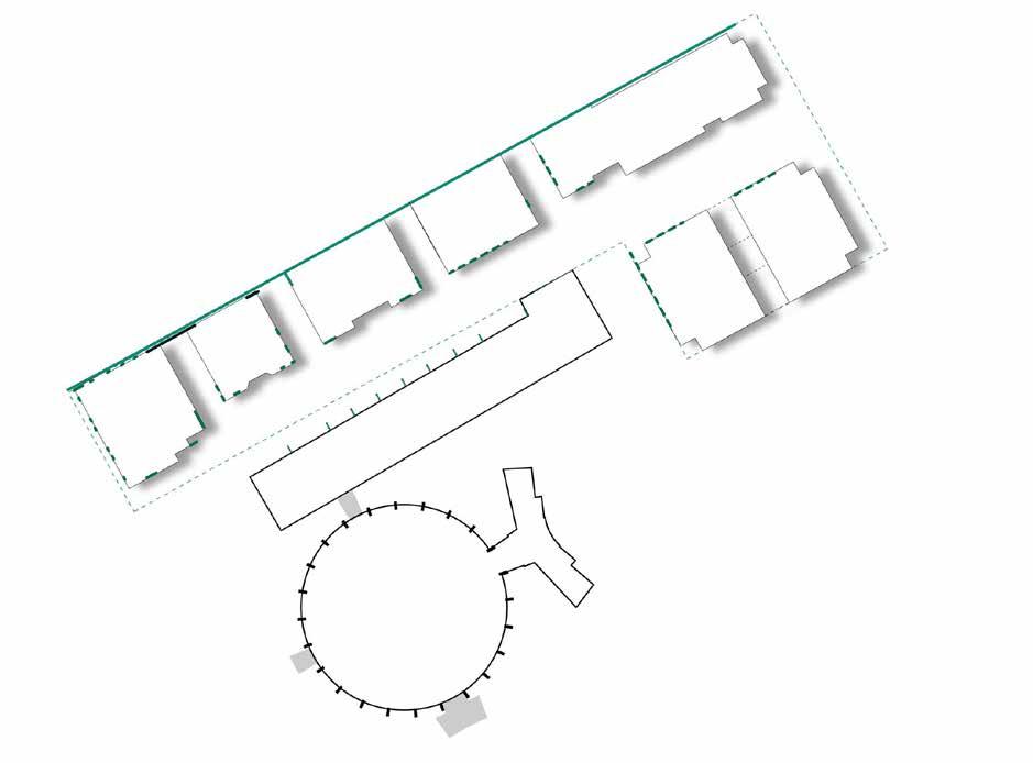De aanbouwen aan de Rotonde komen te vervallen. Het vrijkomende gebied wordt ingevuld met groen.