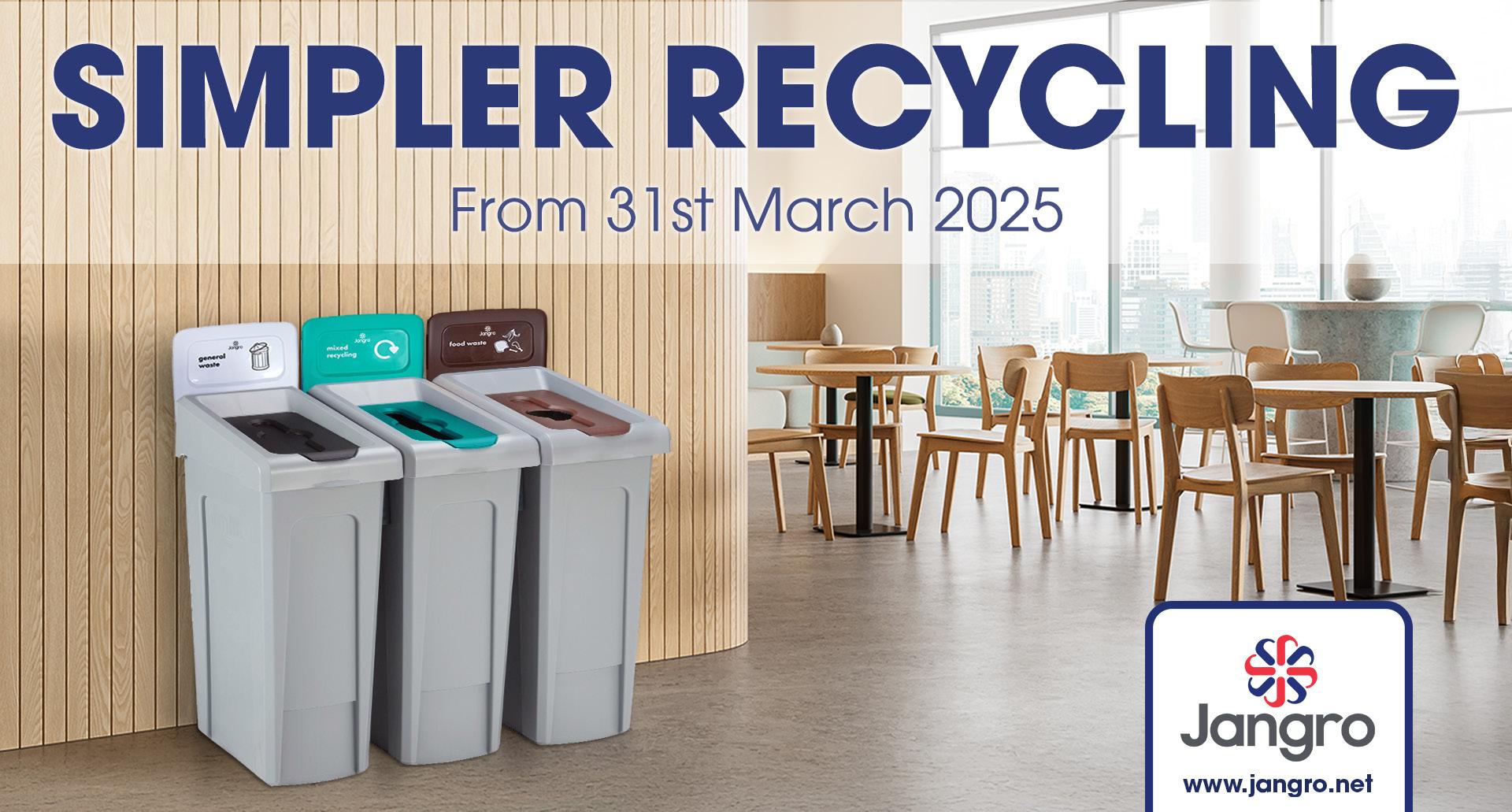 With ‘Simpler Recycling’ reforms taking effect on 31 March 2025, businesses should prepare now to meet the new policy requirements, urges Jangro. The UK & Europe’s largest network of independent janitorial and cleaning distributors is supporting businesses in their preparation with a range of tailored, innovative products.