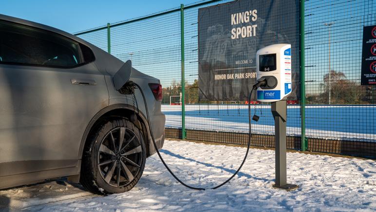 surveys across the King’s estate to identify utilisation rates of existing chargers. Mer’s team also pinpointed the optimal locations for additional charge points such as the new sports centre at Honour Oak Park in South London. In total Mer installed 15 AC charge points across eight sites – a mixture of 7kW and 22kW fast chargers.