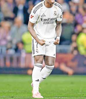 VINÍCIUS JUNIOR FUE la figura del derbi madrileño al marcar dos goles en el triunfo 3-2 del Real Madrid sobre Atlético en el Santiago Bernabéu. El conjunto rojiblanco se adelantó con tanto de Lookman, pero tras el descanso dos errores defensivos cambiaron el rumbo: primero un penalti cometido sobre Brahim que convirtió Vinícius y luego un robo de Fede Valverde para el 2-1.